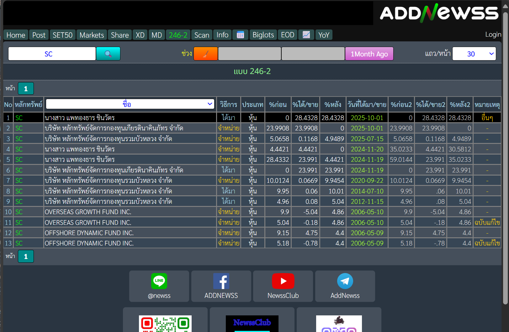 แพทองธาร ชินวัตร 🟡รับโอน SC จาก แลนด์แอนด์เฮ้าส์ และ เกียรตินาคินภัทร รวม 1,216,149,870 หุ้น 📅 2025-10-07 18:56 ✎ administrator 🗇 👨💼MD 👍 - แชร์โพสต์นี้ แพทองธาร ชินวัตร 🟡รับโอน SC จาก แลนด์แอนด์เฮ้าส์ และ เกียรตินาคินภัทร รวม 1,216,149,870 หุ้น รายงาน 246-2 วันรายงาน 📅07/10/2025 https://addnewss.news/post/68b6da08822be02ca1e38cf3 ดูผู้ถือหุ้นใหญ่ https://addnewss.news/shareholder?symbol=SC ดูรายงาน 246-2 https://addnewss.news/246-2?page=1&symbol=SC