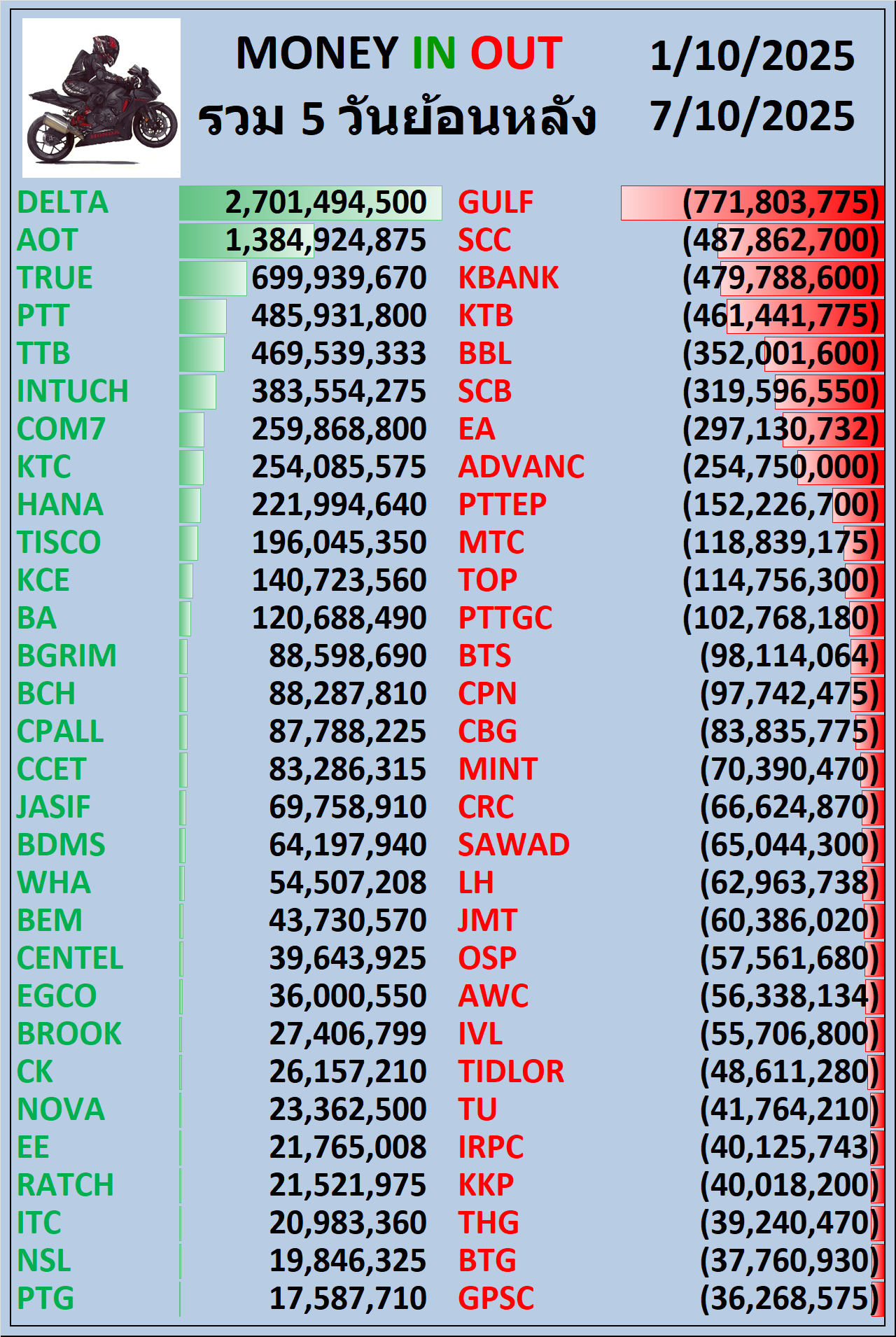 💸MONEY 🟢IN 🔴OUT 1 , 5 , 10 วันย้อนหลัง 07/10/2025