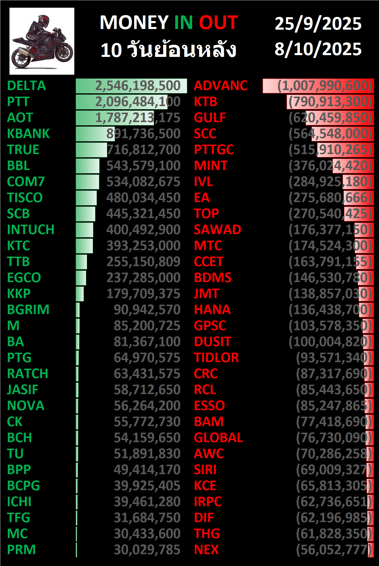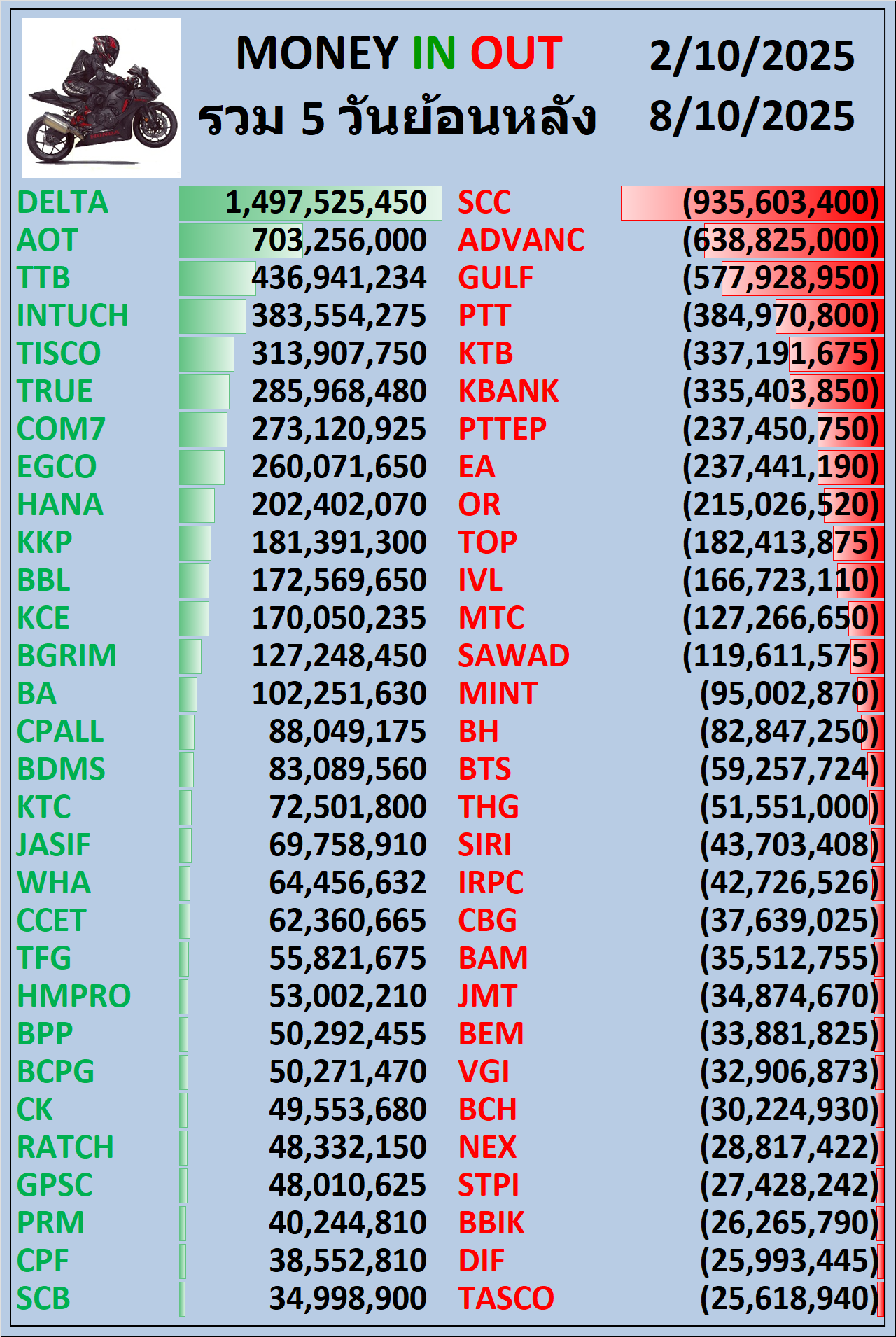 💸MONEY 🟢IN 🔴OUT 1 , 5 , 10 วันย้อนหลัง 08/10/2025