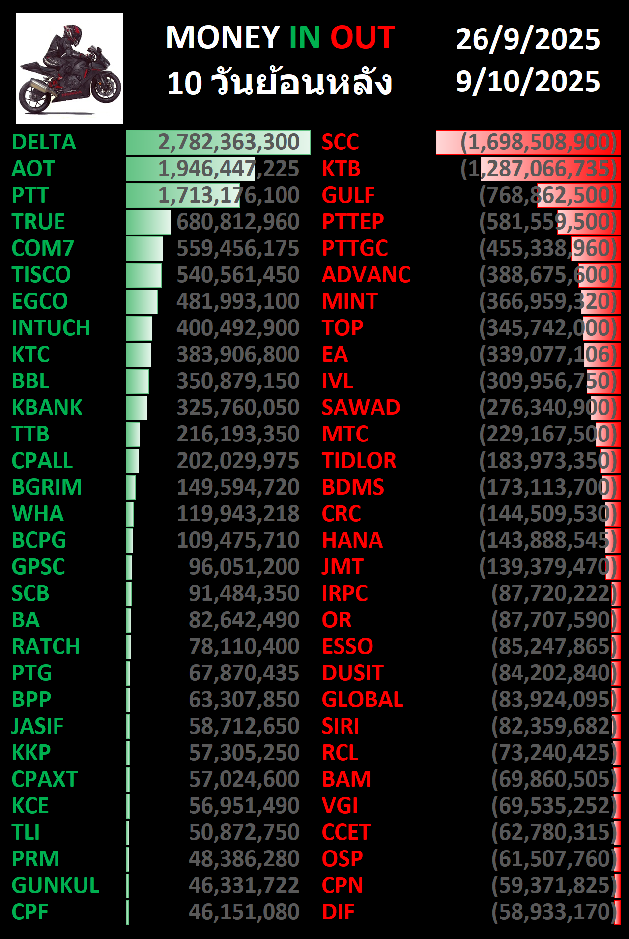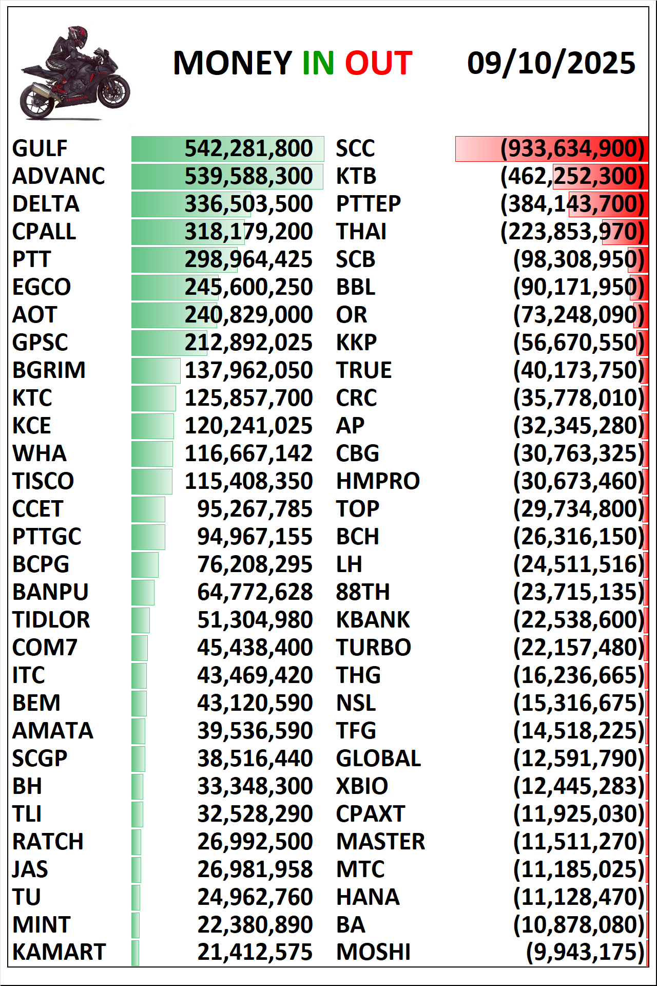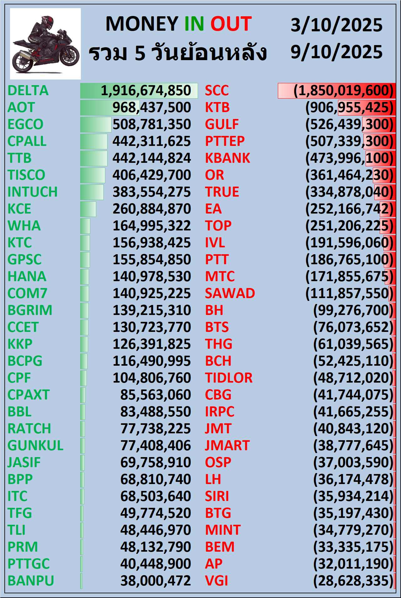 💸MONEY 🟢IN 🔴OUT 1 , 5 , 10 วันย้อนหลัง 09/10/2025