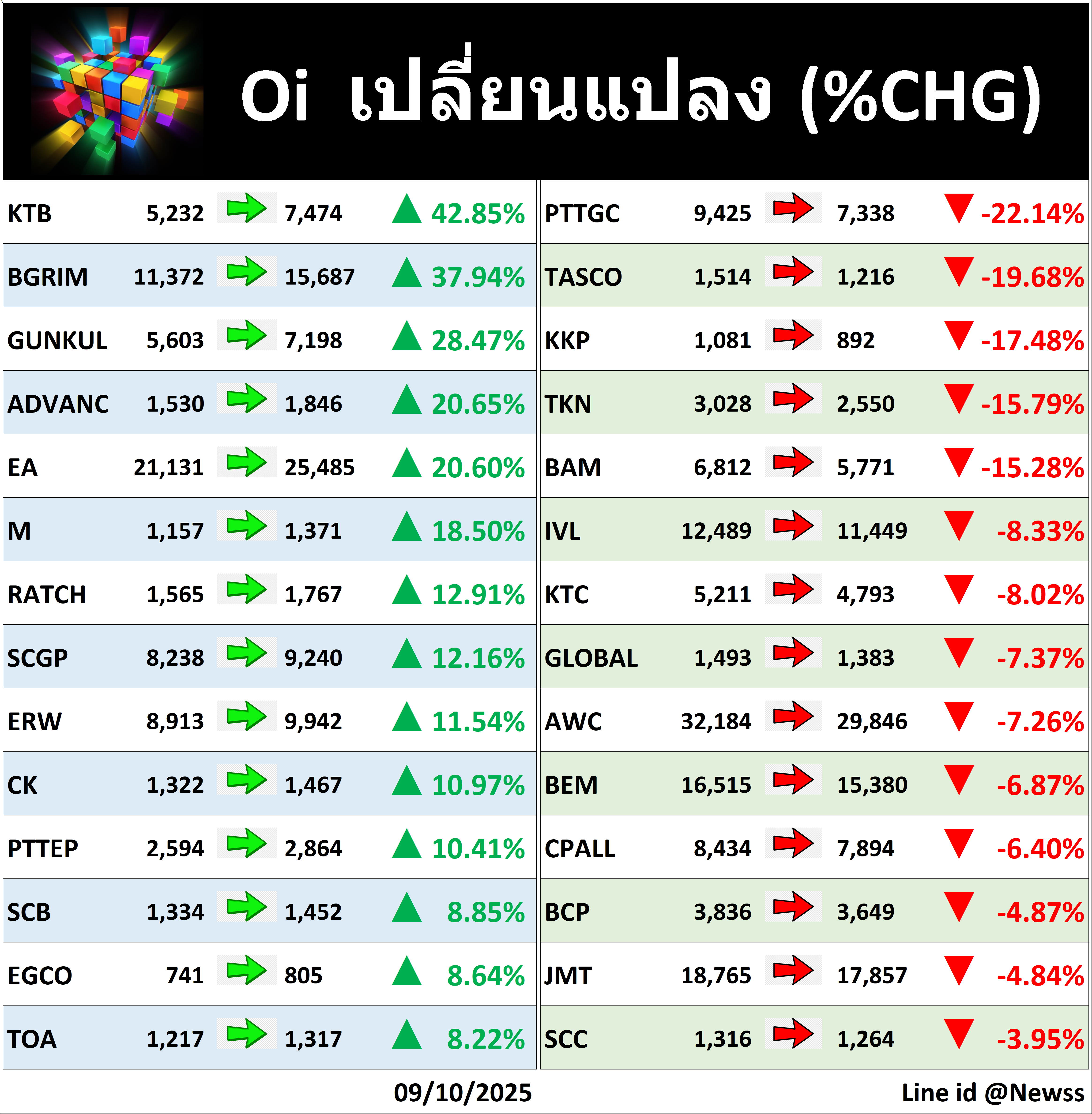 สถานะคงค้าง (Oi) 📅09/10//2025 📅 2025-10-09 23:11 ✎ administrator 🗇 TFEX 👍 - แชร์โพสต์นี้ สถานะคงค้าง (Oi) 📅09/10//2025 ดูย้อนหลัง https://addnewss.news/post?sp=OI