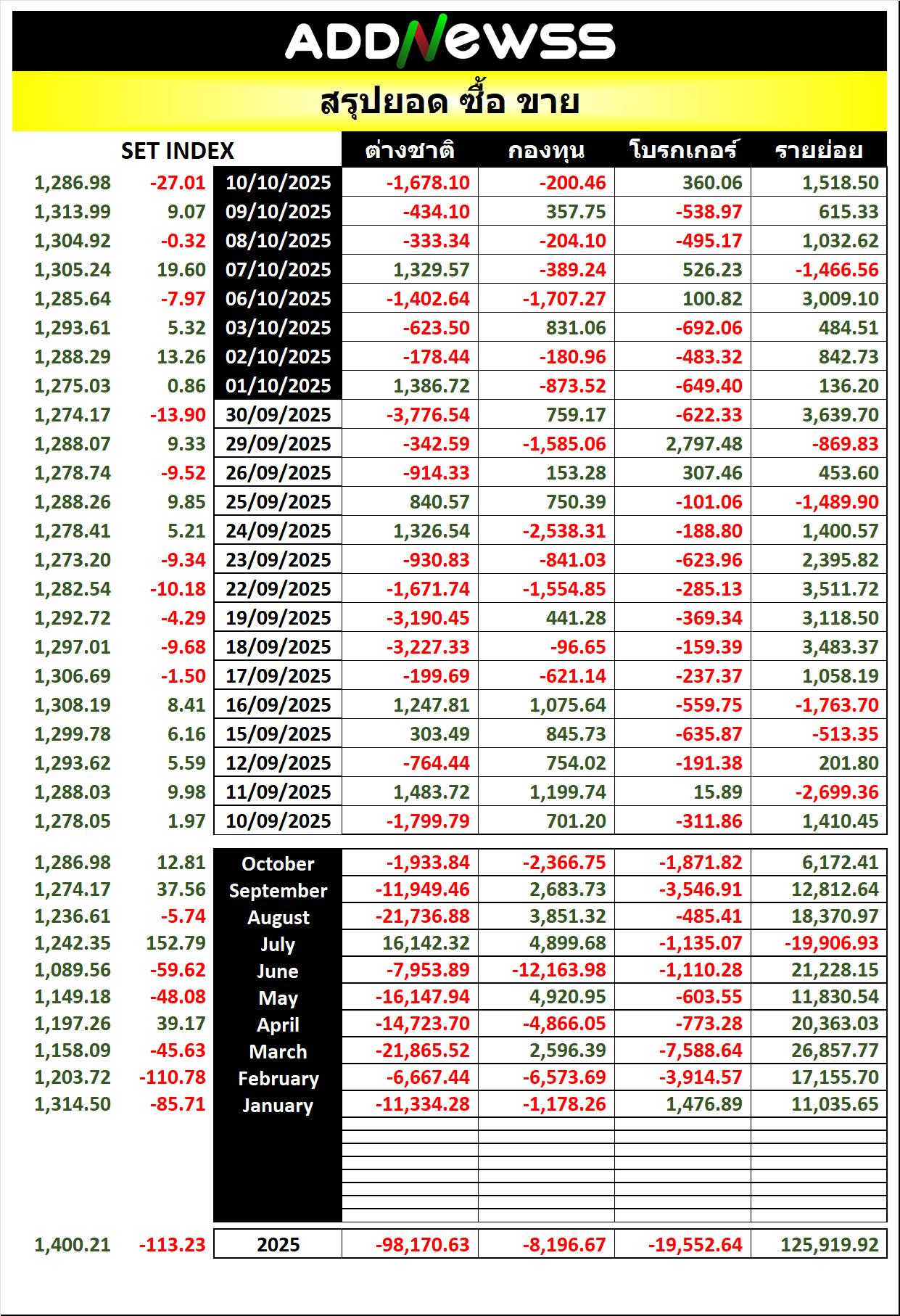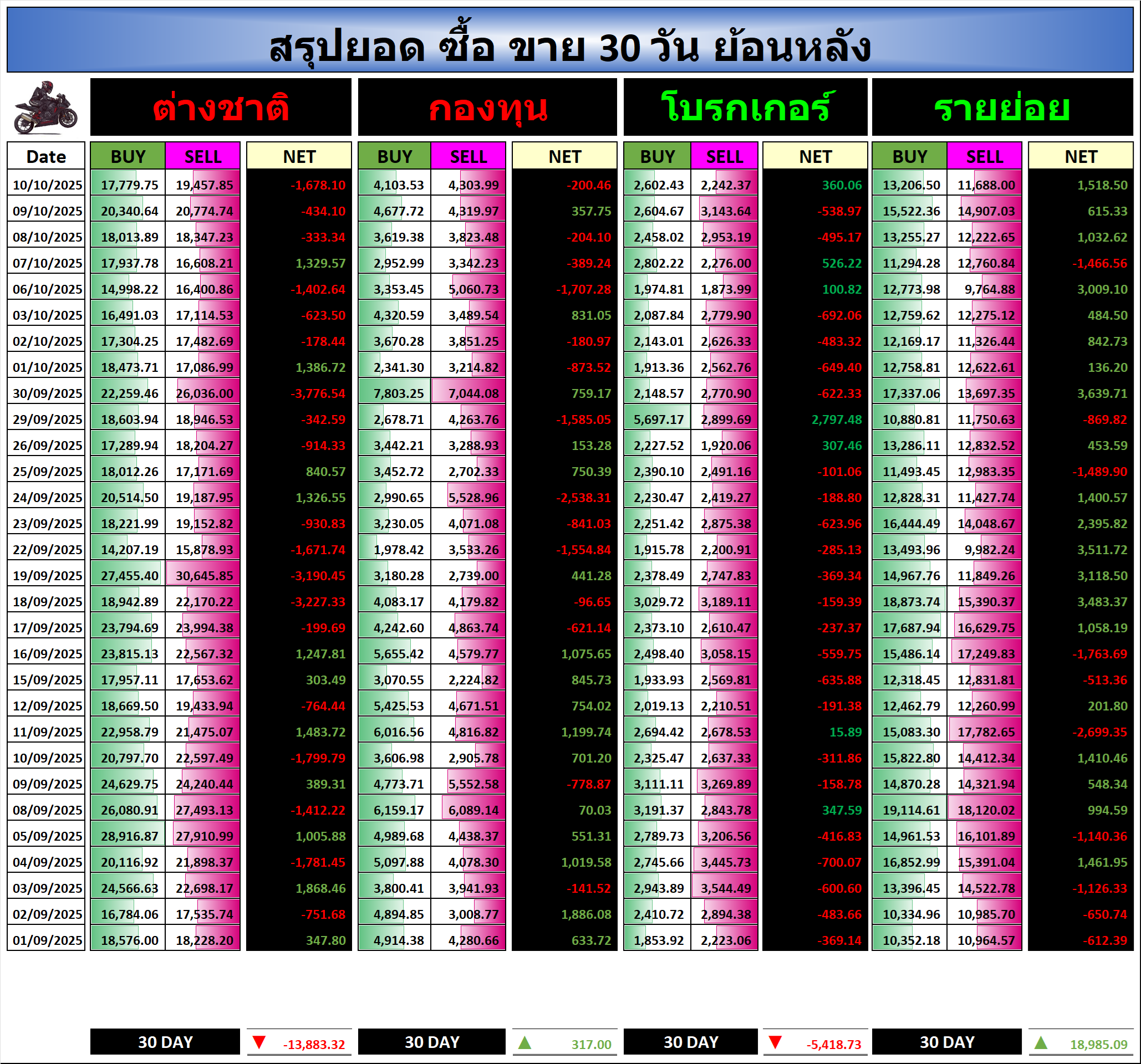 🔥🔥สรุปยอด ซื้อ ขาย🟢 🔴 10/10/2025