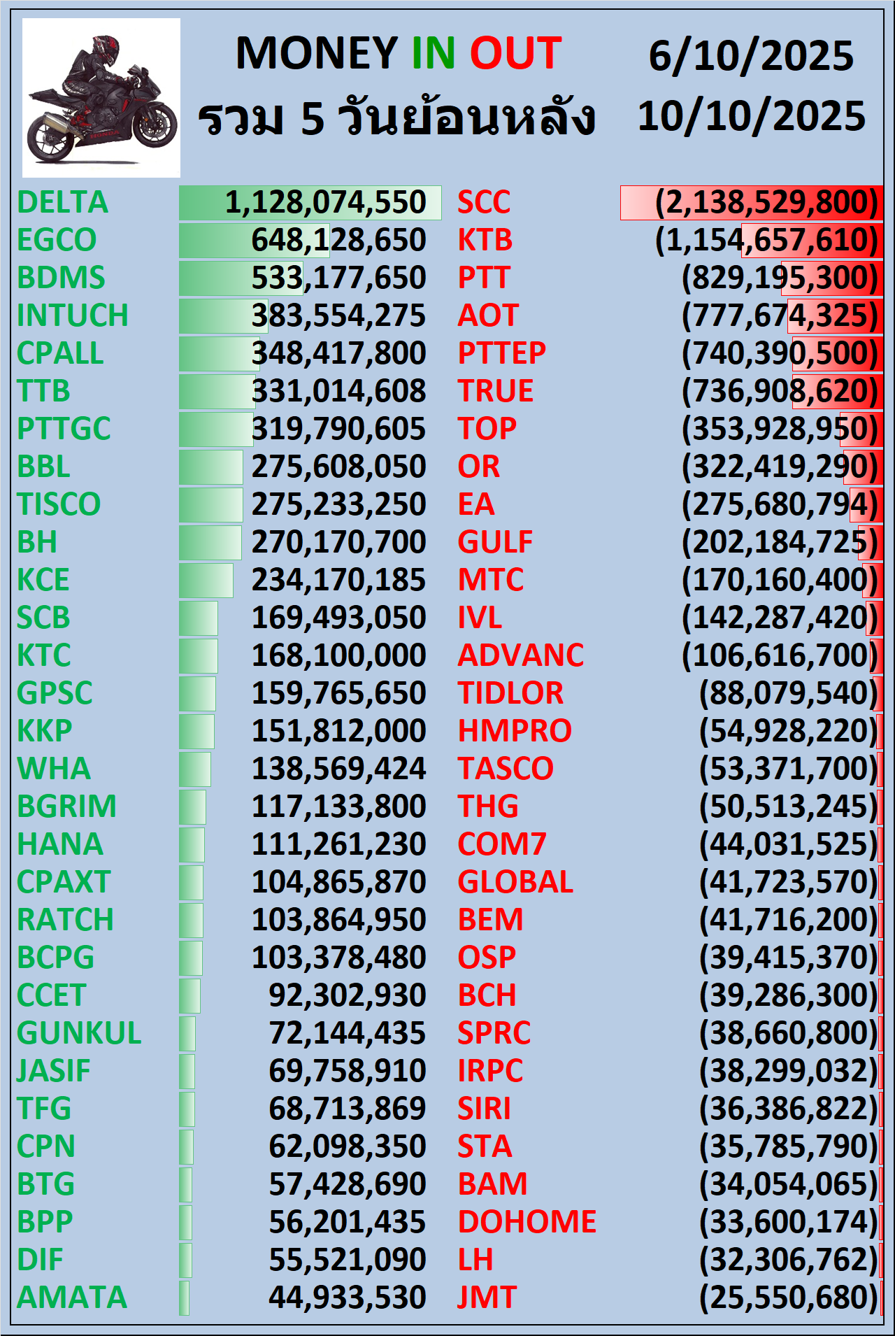 💸MONEY 🟢IN 🔴OUT 1 , 5 , 10 วันย้อนหลัง 10/10/2025