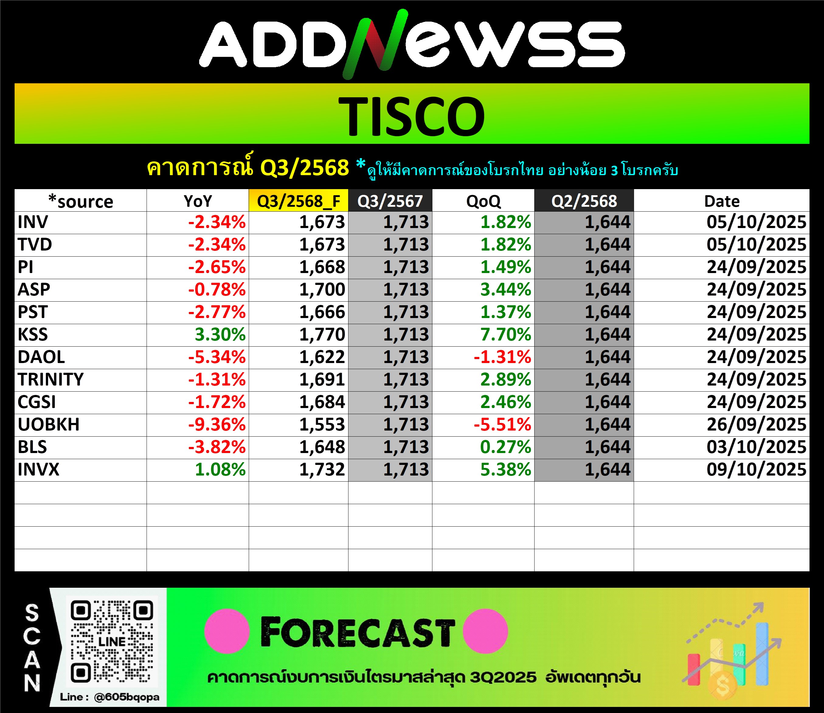 🔥TISCO Q3/2568 📅 2025-10-14 13:19 ✎ administrator 🗇 📰News 👍 - แชร์โพสต์นี้ 🔥TISCO Q3/2568 พิมพ์ชื่อหุ้นตามด้วย .F ดูคาดการณ์ได้ที่ Line id : @885jkqlv ⭐เพิ่มเพื่อนก่อน ครับ https://lin.ee/FkhvQ8v