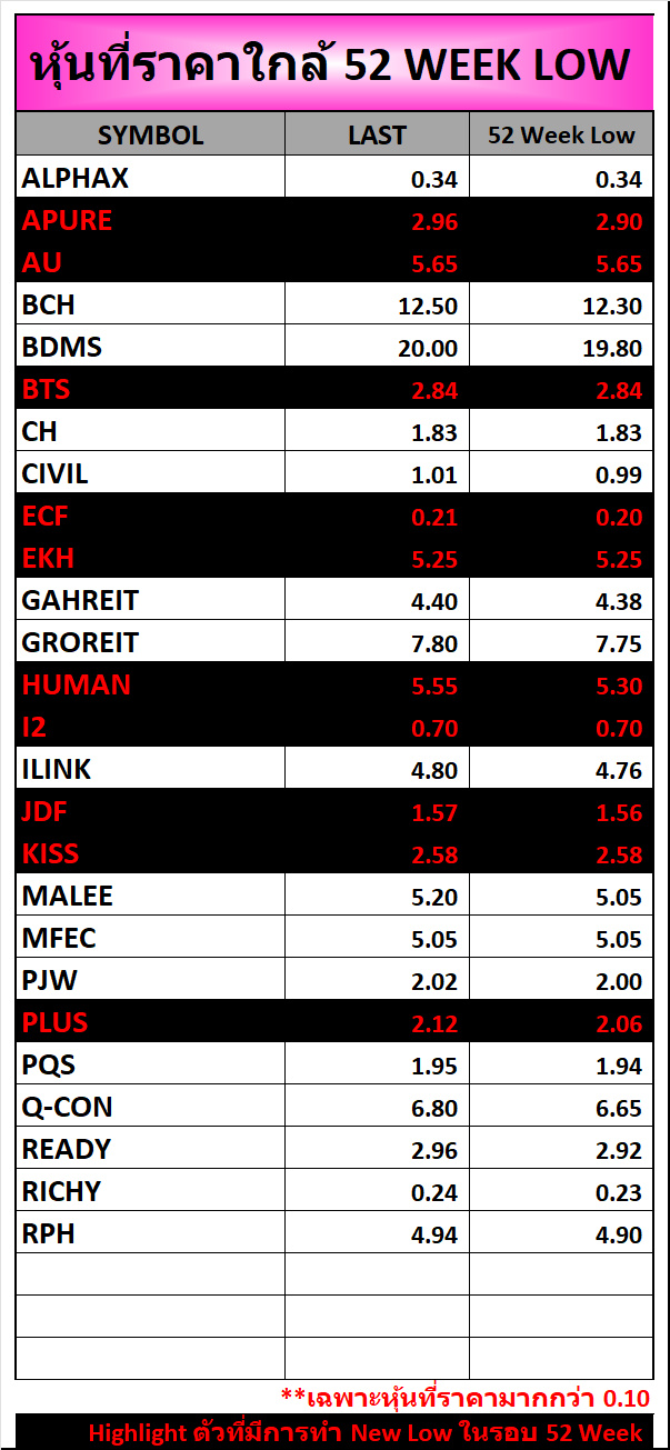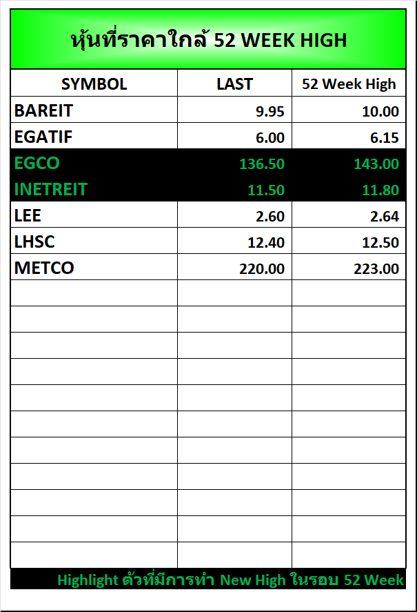 ⭐หุ้นที่ราคาใกล้ 52 Week 🟢High 🔴Low 📅14/10/2025
