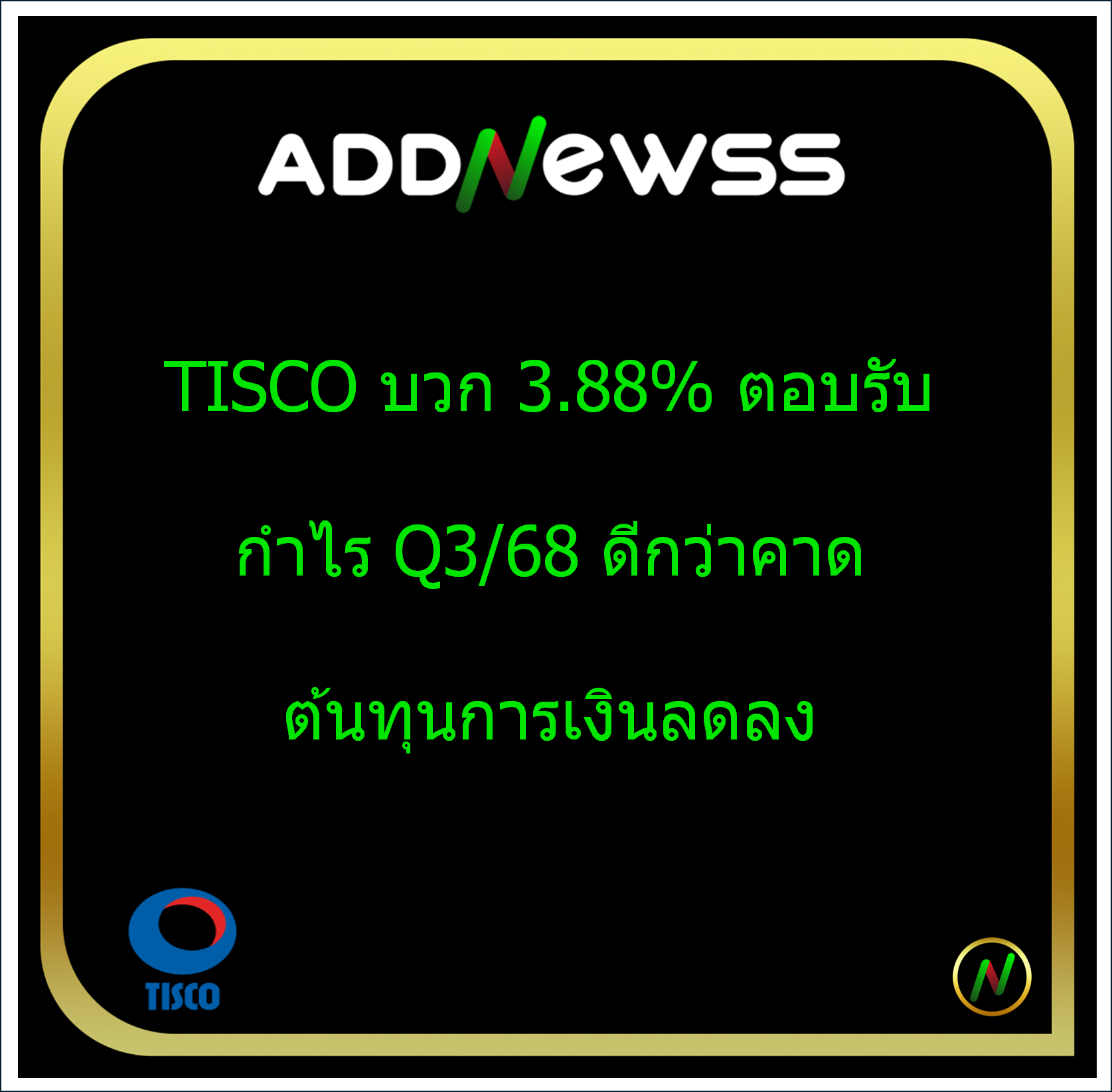 IQ > : TISCO บวก 3.88% ตอบรับกำไร Q3/68 ดีกว่าคาด NPL ลดลง-NIM เพิ่มขึ้น