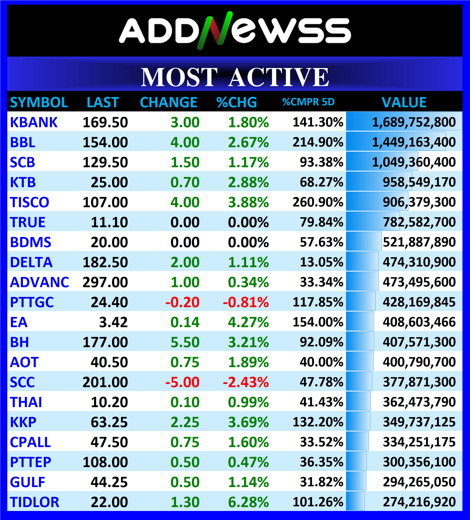 KBANK : 🟢+3.00 ฿1,689,752,800