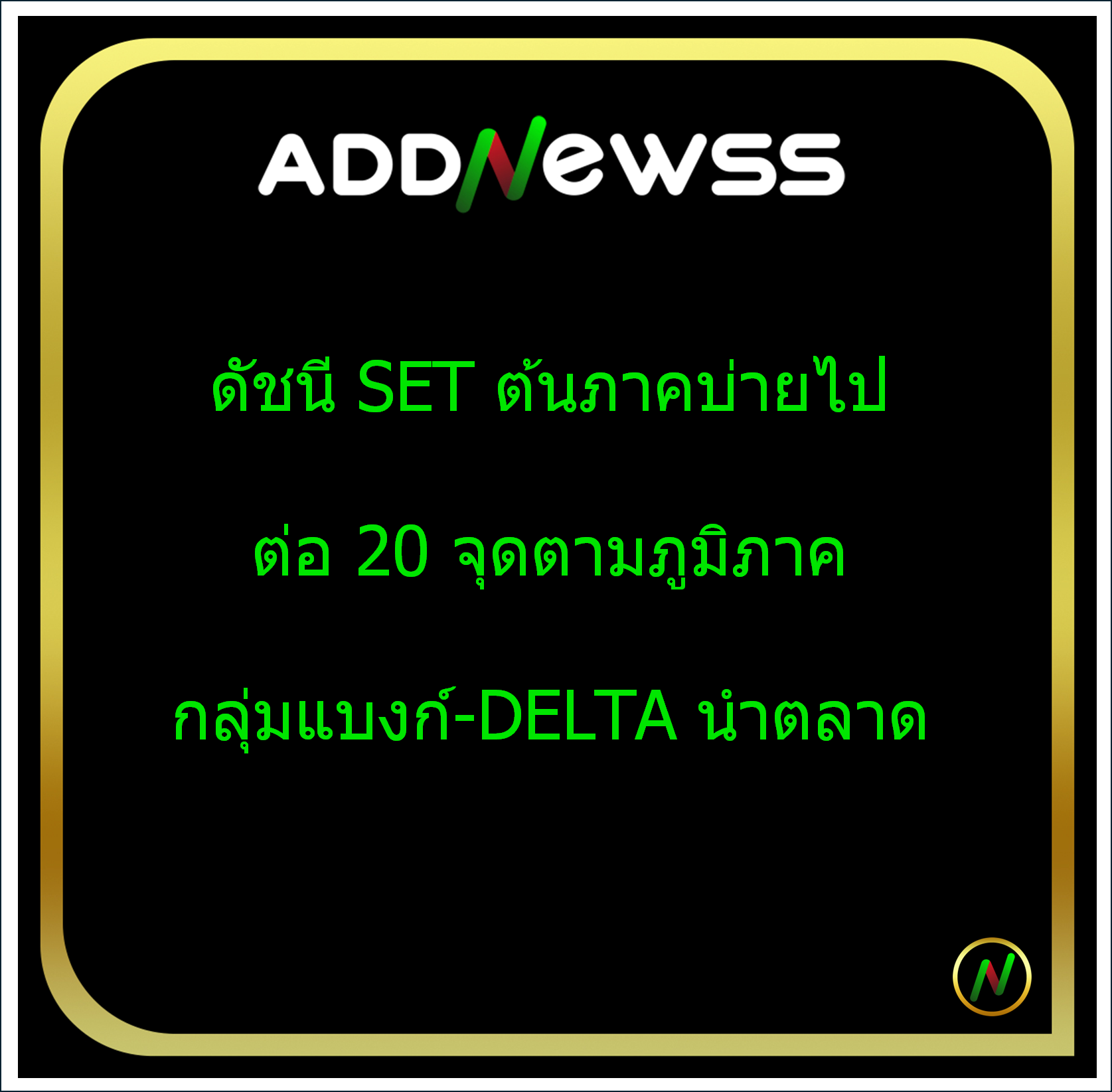 IQ > ดัชนี SET ต้นภาคบ่ายไปต่อ 20 จุดตามภูมิภาค กลุ่มแบงก์-DELTA นำตลาด