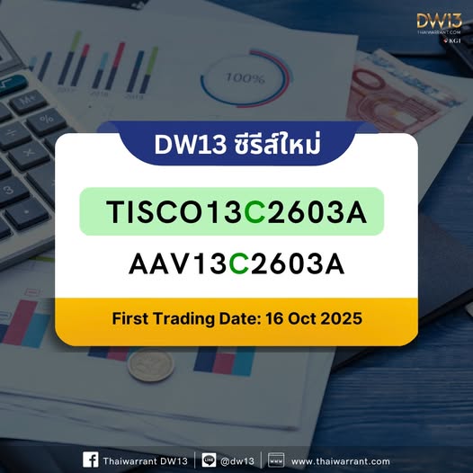 พบกับ DW13 อ้างอิง TISCO และ AAV เทรดพรุ่งนี้ (16 ต.ค. 68) https://www.thaiwarrant.com/kgi-dw/newdw