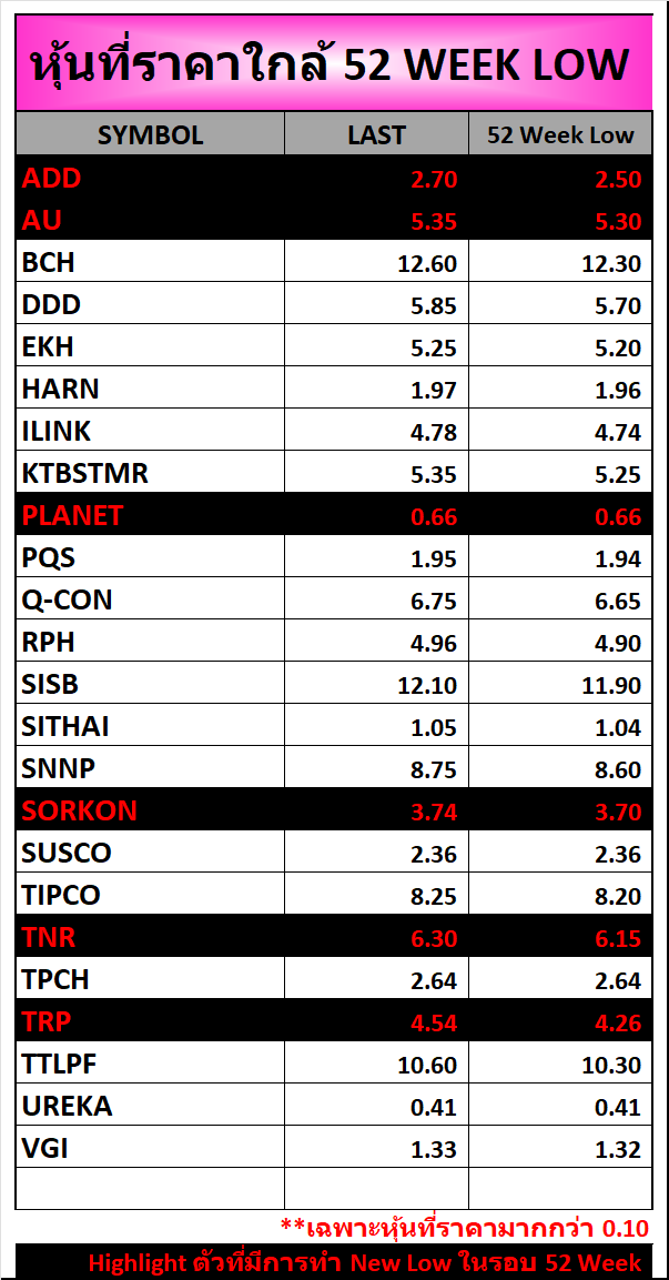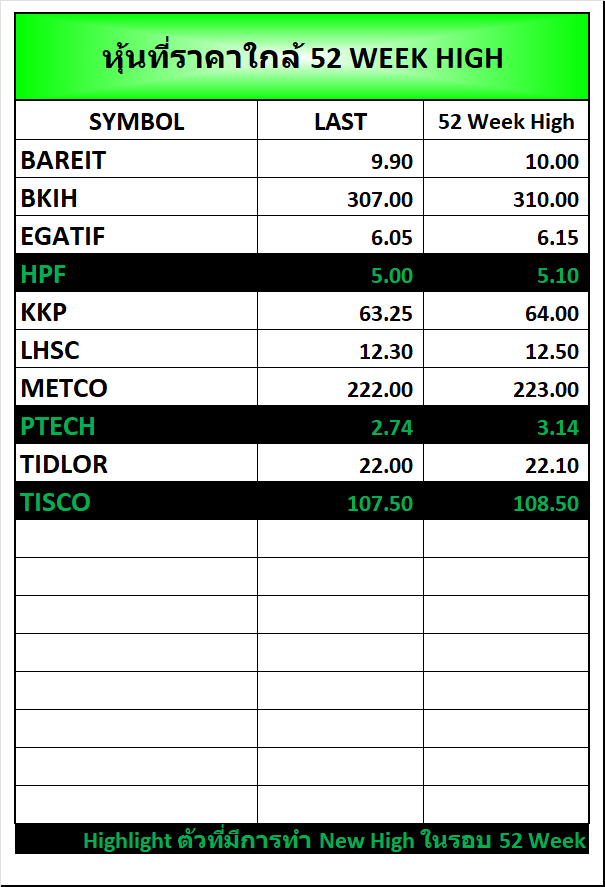 ⭐หุ้นที่ราคาใกล้ 52 Week 🟢High 🔴Low 📅16/10/2025