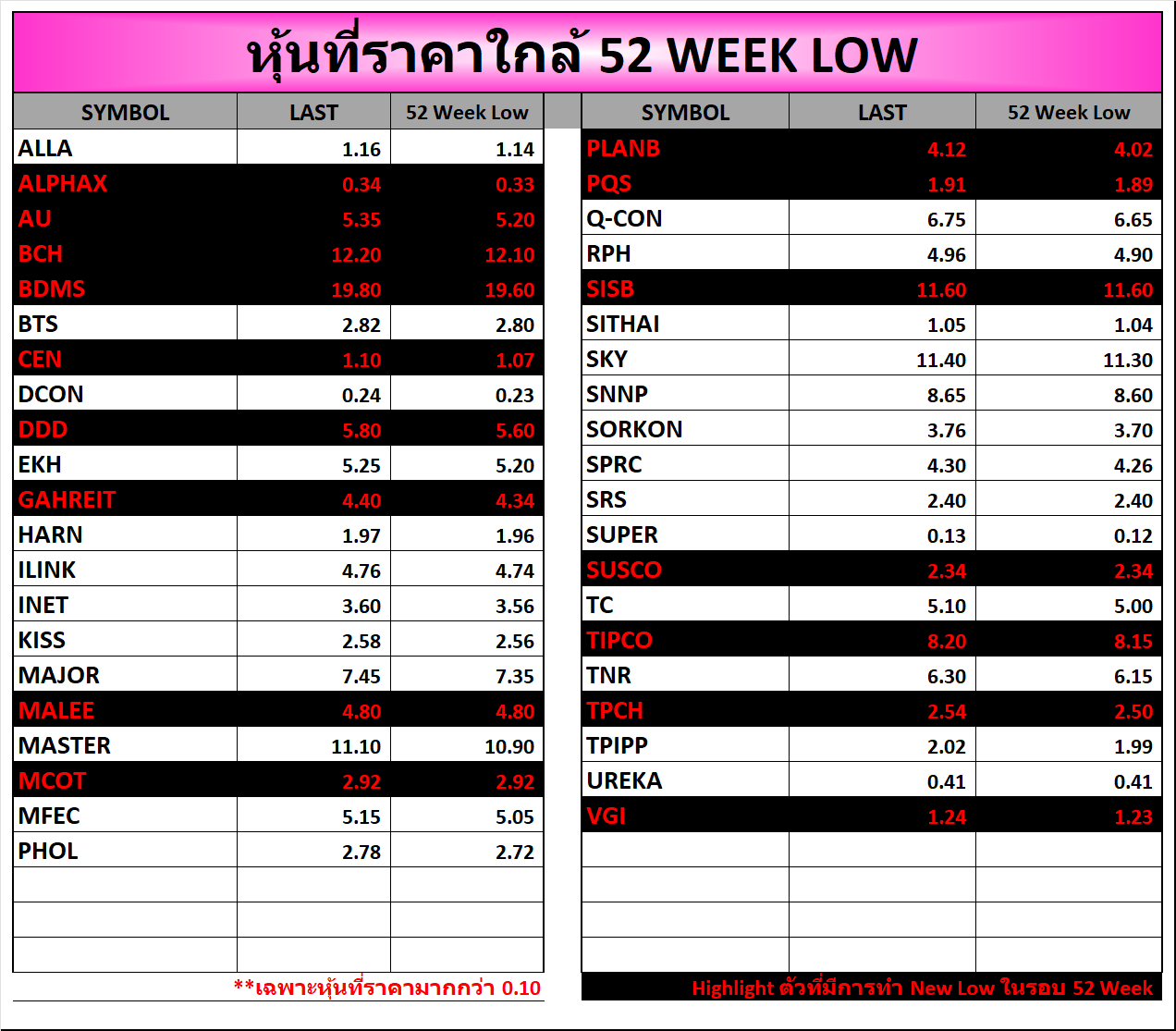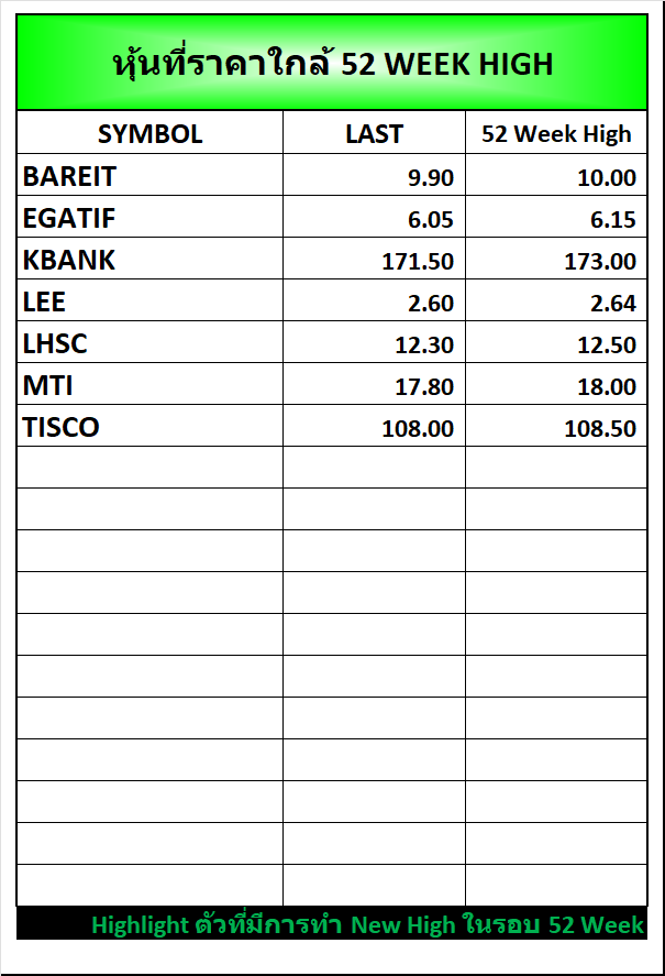 ⭐หุ้นที่ราคาใกล้ 52 Week 🟢High 🔴Low 📅17/10/2025