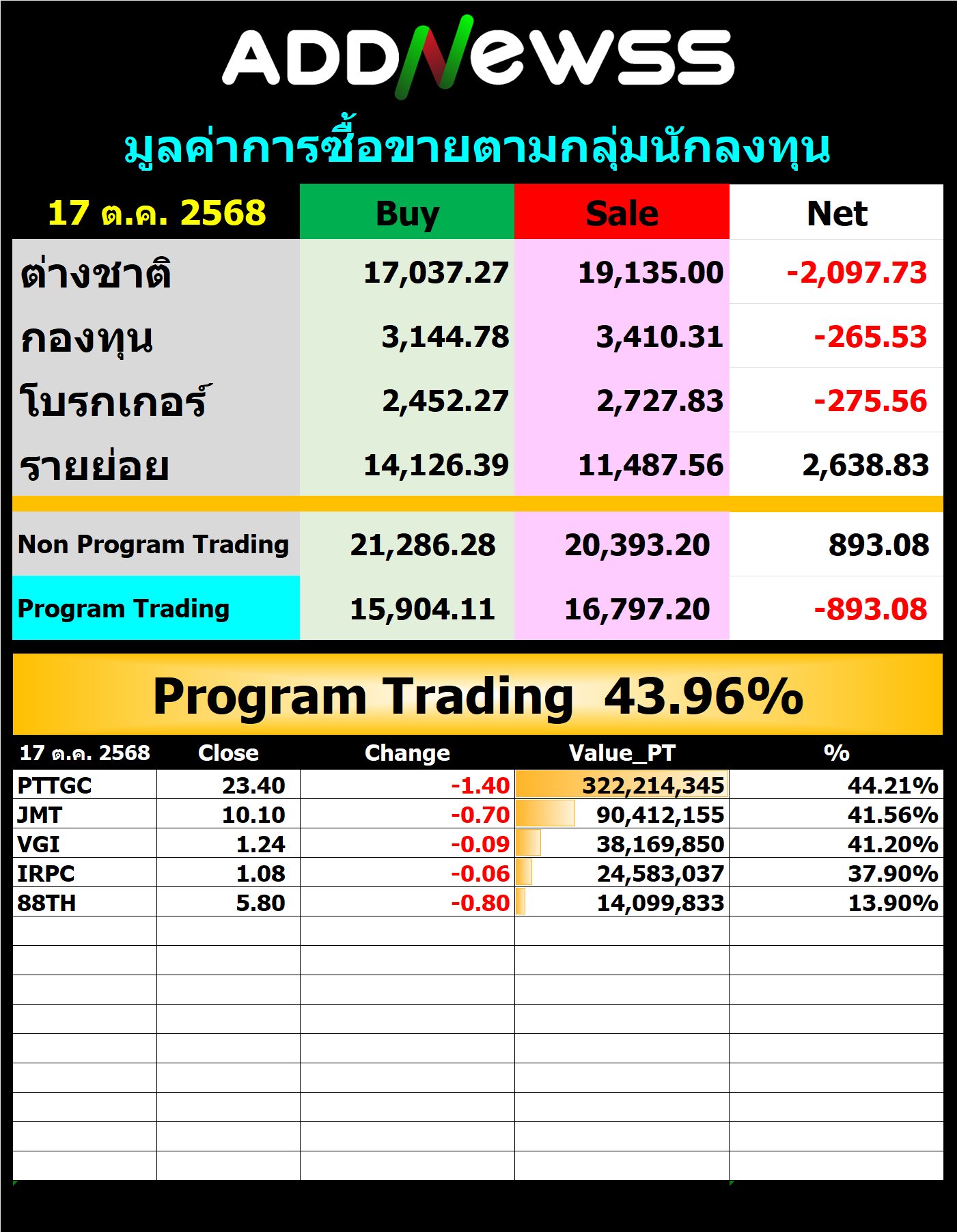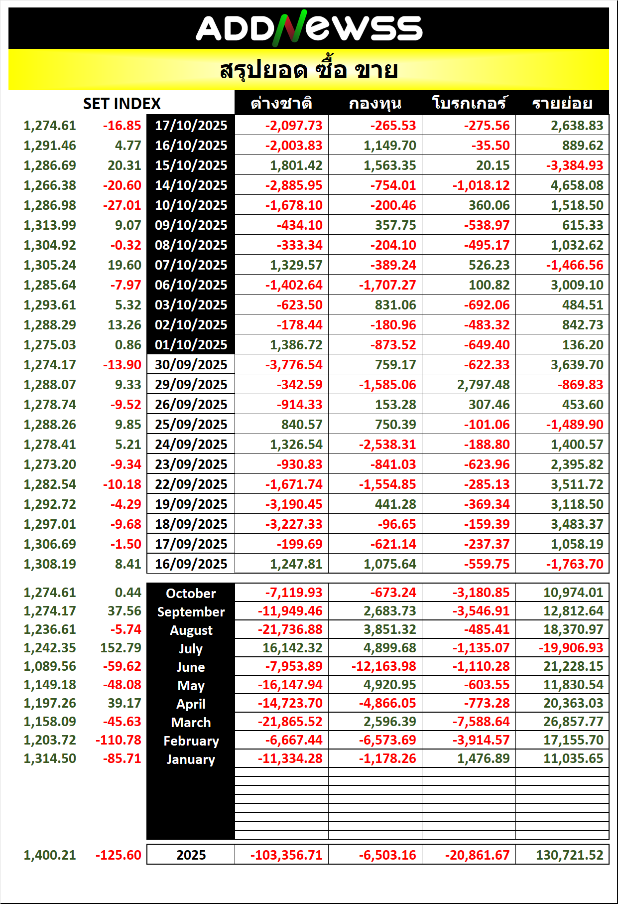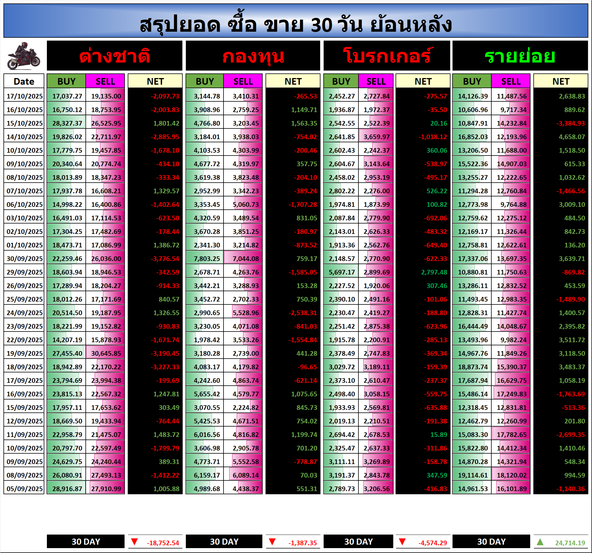 🔥🔥สรุปยอด ซื้อ ขาย🟢 🔴 17/10/2025