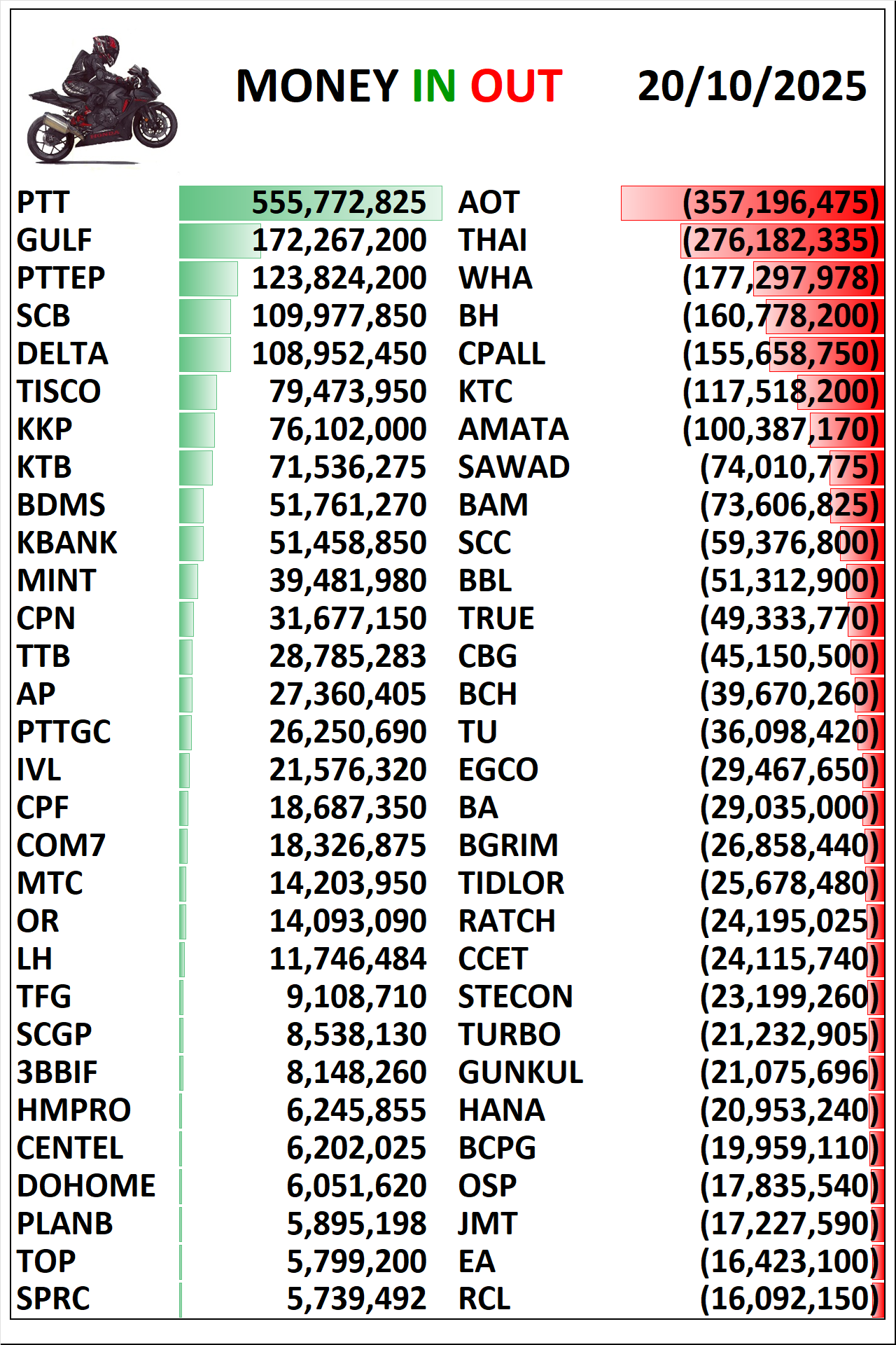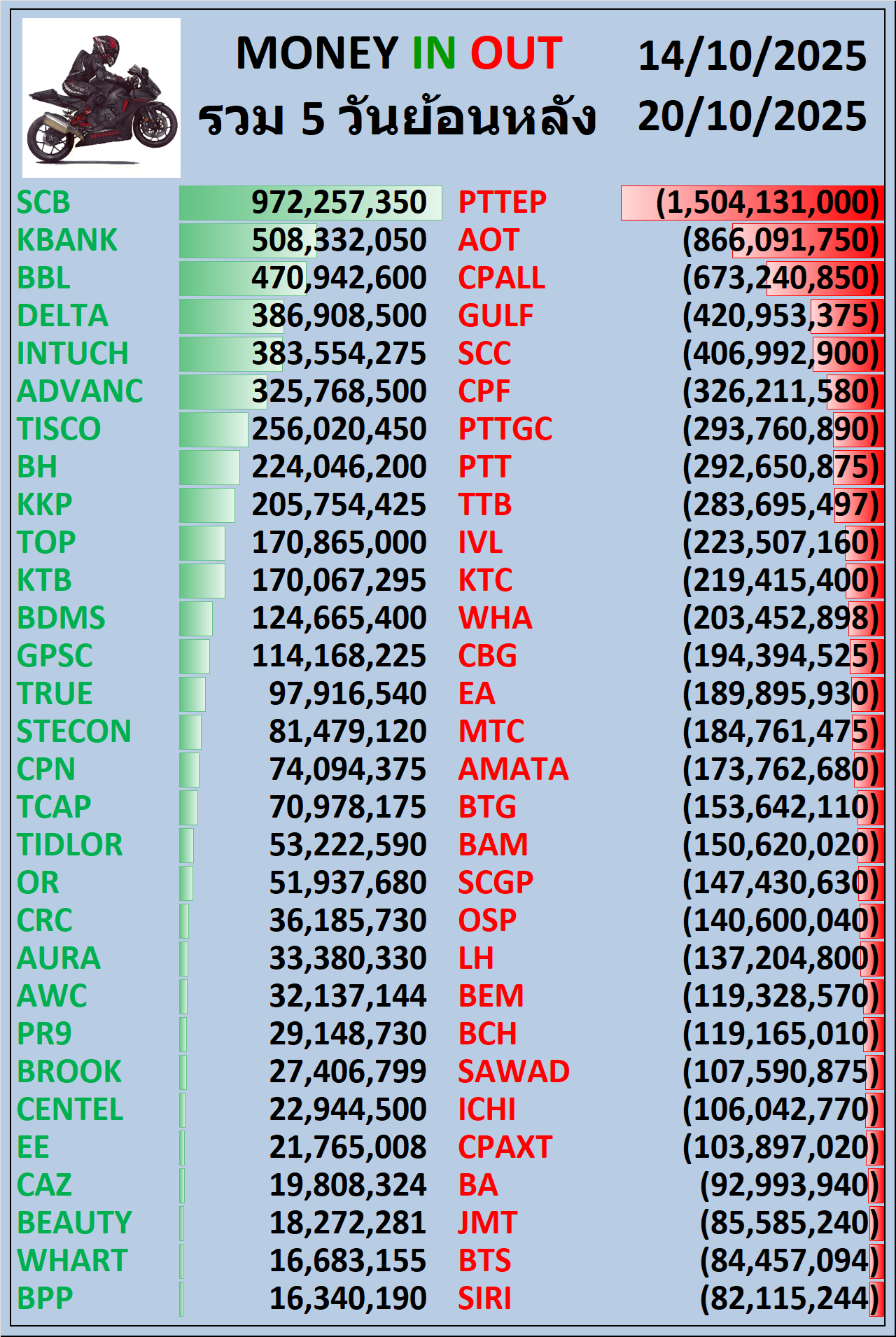 💸MONEY 🟢IN 🔴OUT 1 , 5 , 10 วันย้อนหลัง 20/10/2025