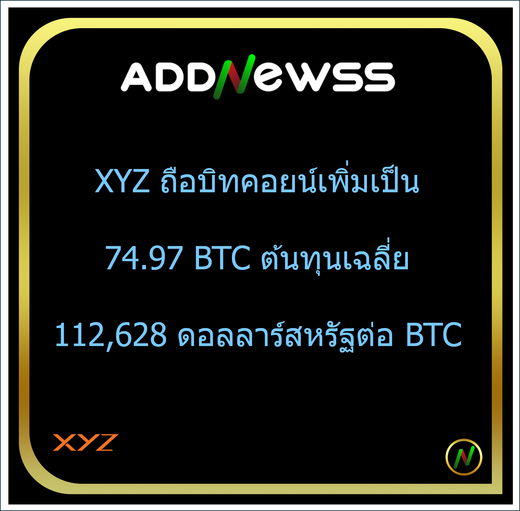 IQ > XYZ ถือบิทคอยน์เพิ่มเป็น 74.97 BTC ต้นทุนเฉลี่ย 112,628 ดอลลาร์สหรัฐต่อ BTC