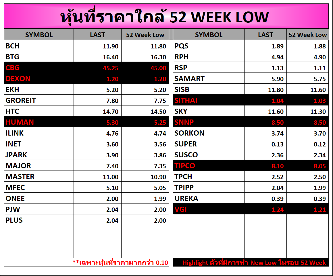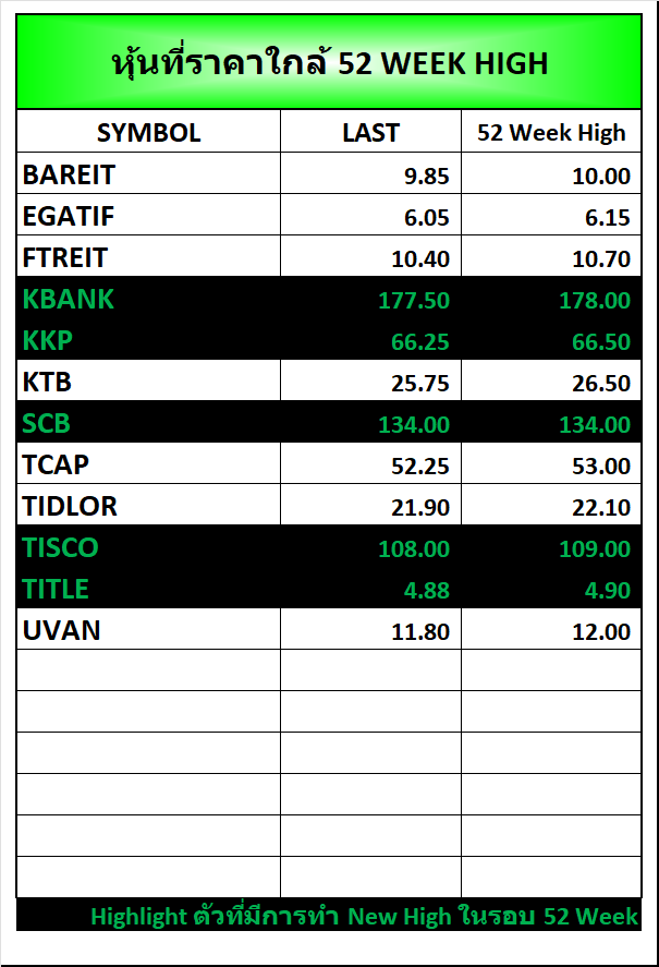 ⭐หุ้นที่ราคาใกล้ 52 Week 🟢High 🔴Low 📅21/10/2025