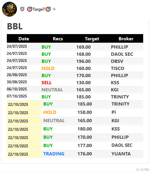 11.43 CMNT> BBL: แนะนำ "TRADING" ราคาเป้าหมาย 176.00 บาท - บล.หยวนต้า