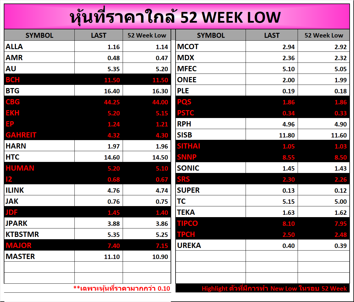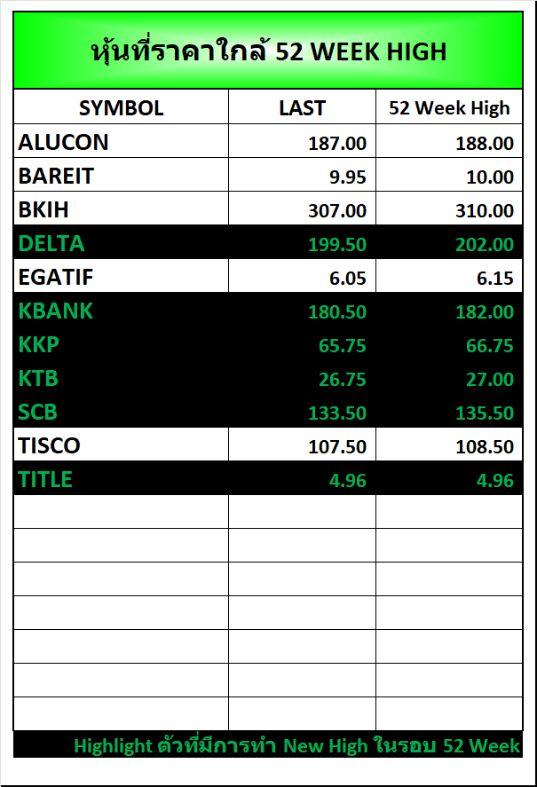 ⭐หุ้นที่ราคาใกล้ 52 Week 🟢High 🔴Low 📅22/10/2025