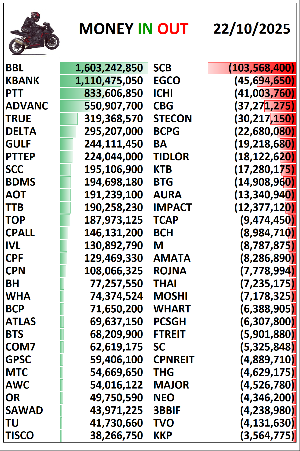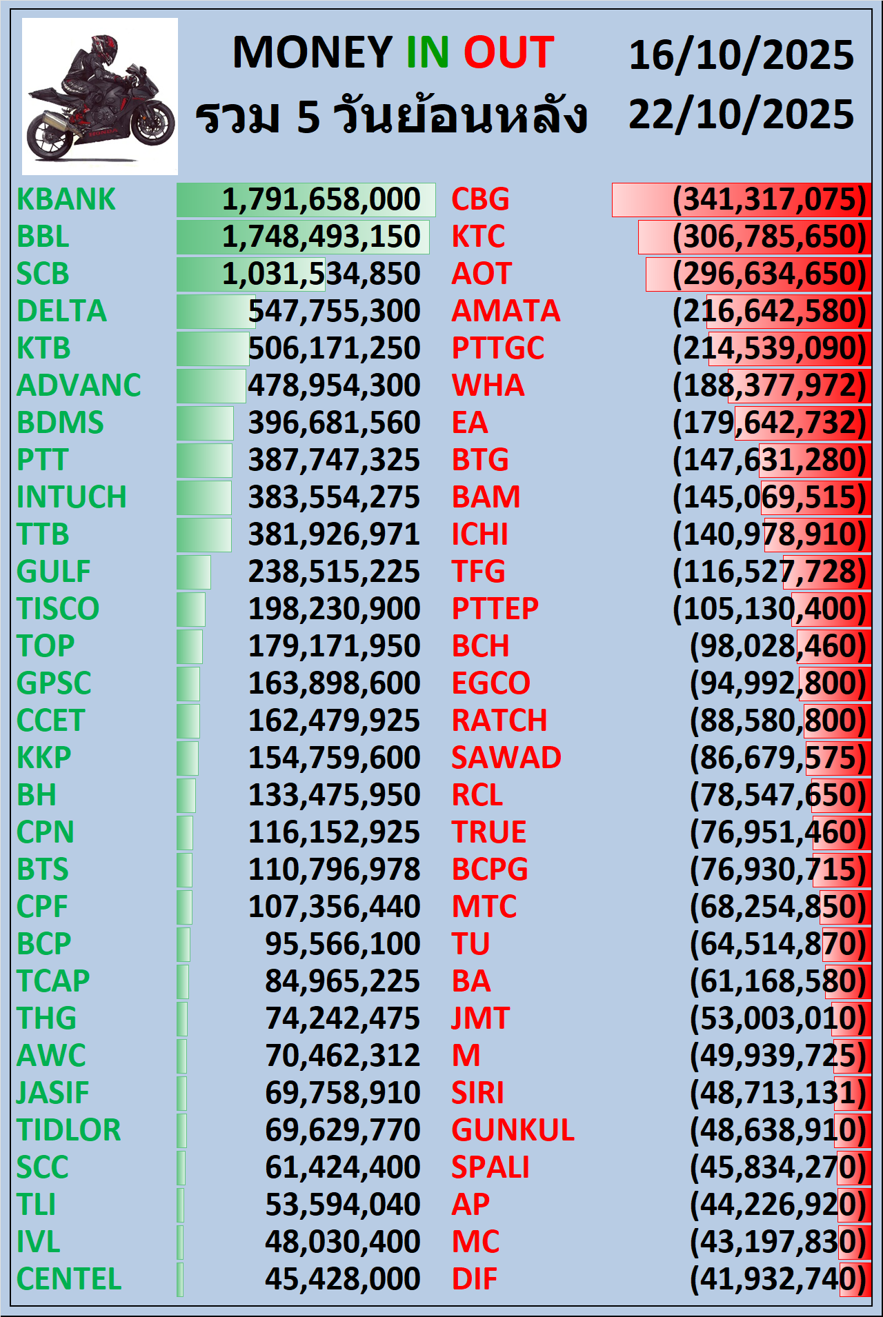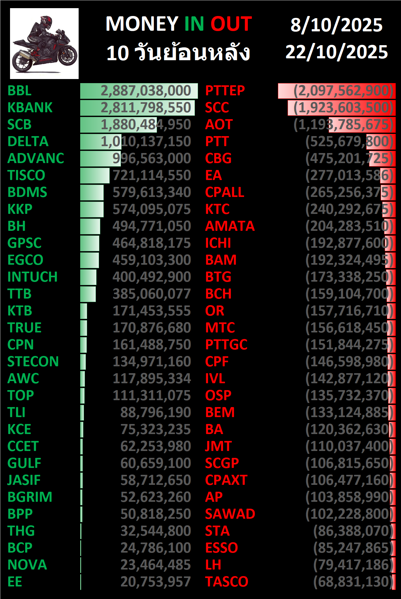 💸MONEY 🟢IN 🔴OUT 1 , 5 , 10 วันย้อนหลัง 22/10/2025