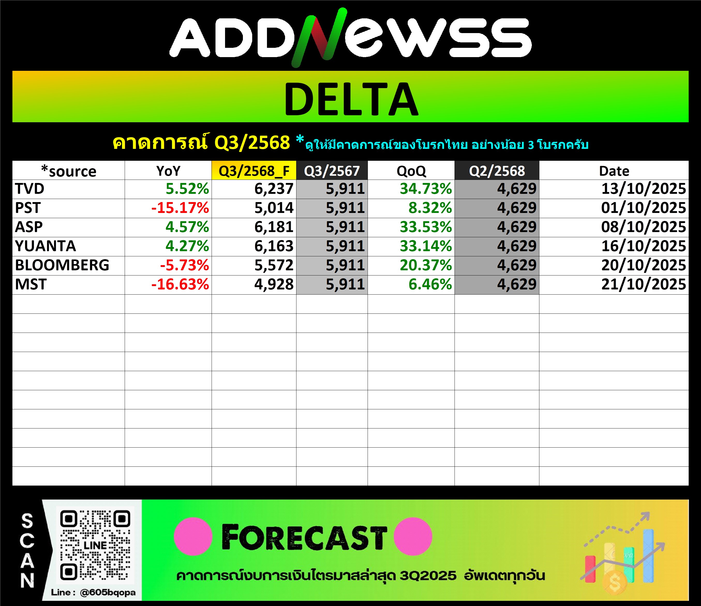 🔥 DELTA Q3/2568 📅 2025-10-24 19:01 ✎ administrator 🗇 📰News 👍 - แชร์โพสต์นี้ 🔥 DELTA Q3/2568 🔮ดูคาดการณ์ พิมพ์ชื่อหุ้นตามด้วย .F ดูได้ที่ Line นะครับ ⭐เพิ่มเพื่อนก่อน ครับ Line id : @885jkqlv https://lin.ee/FkhvQ8v