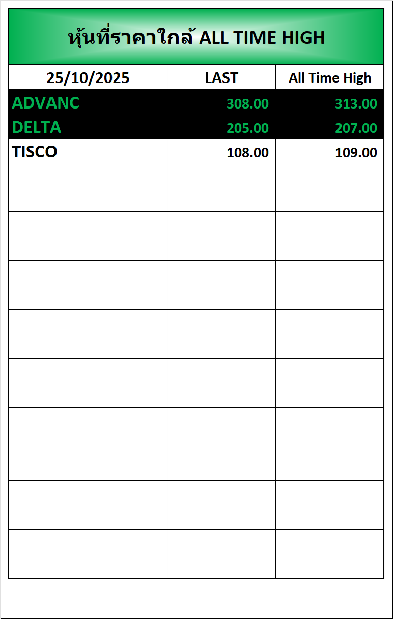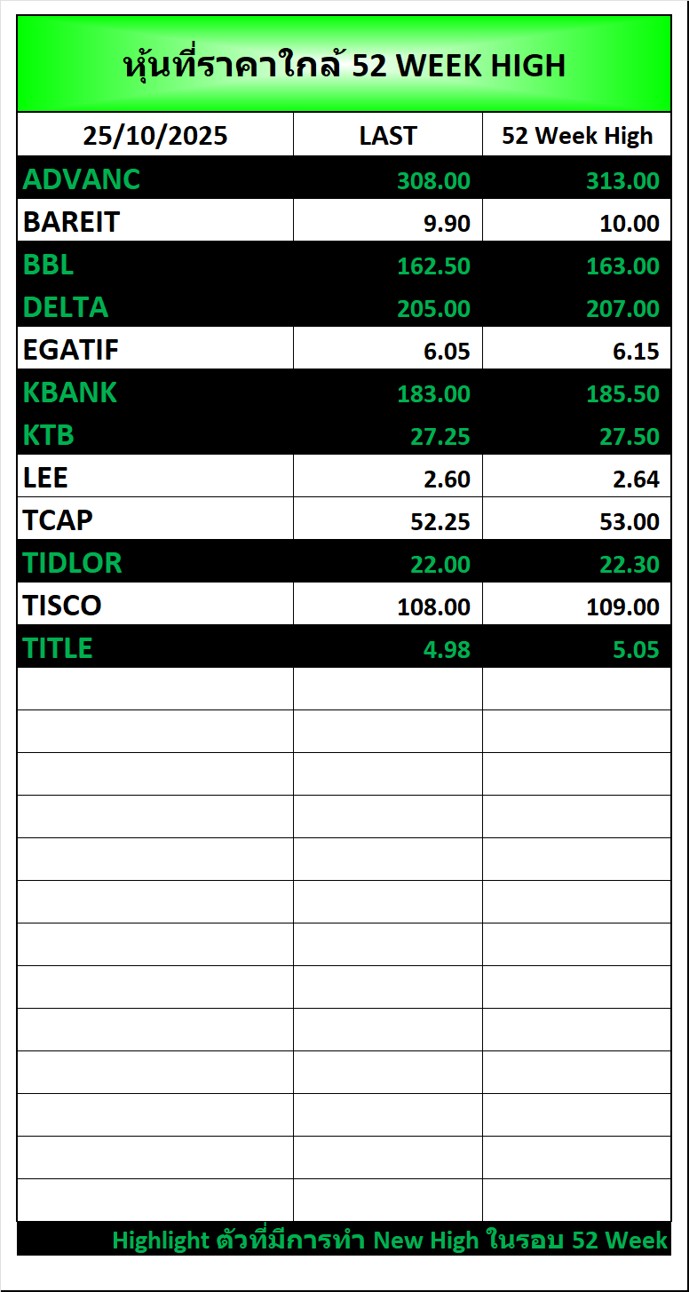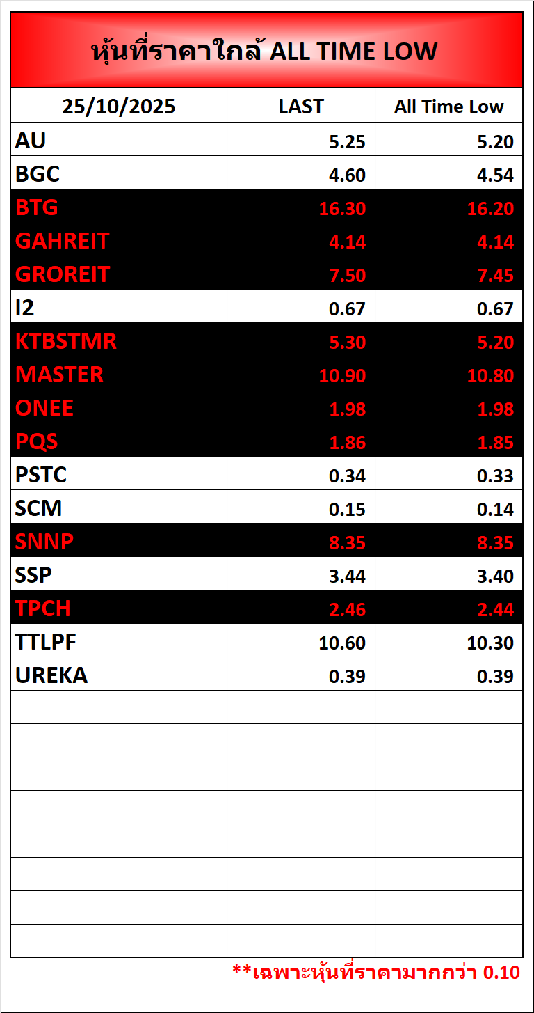 ⭐🔥หุ้นที่ราคาใกล้ ALL TIME 🟢High 🔴Low 📅24/10/2025