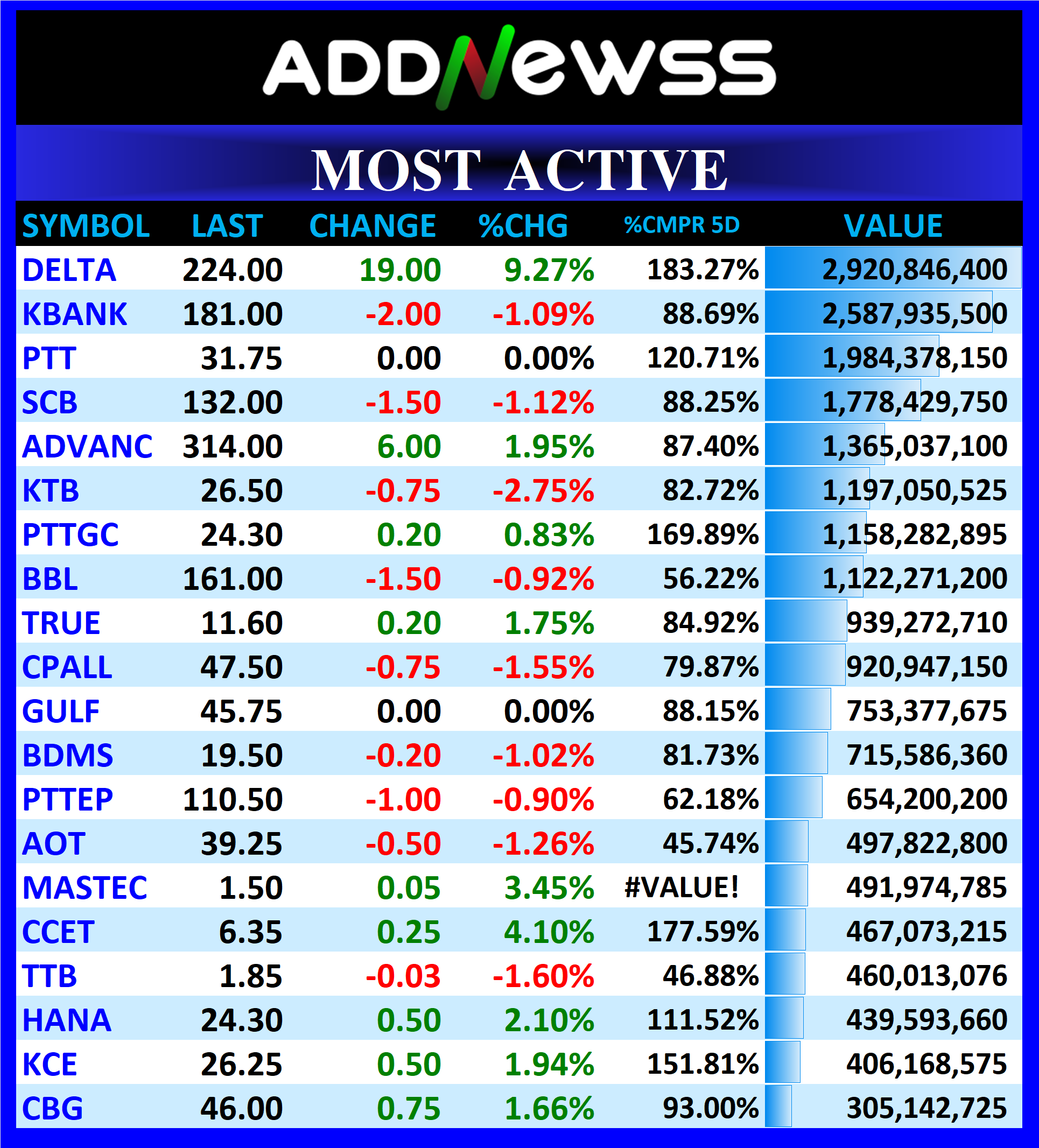DELTA : 🟢+19.00 ฿2,920,846,400