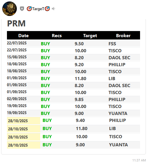 9.36	CMNT> PRM: แนะนำ "ซื้อ" ราคาเป้าหมาย 9.40 บาท - บล.ฟิลลิป