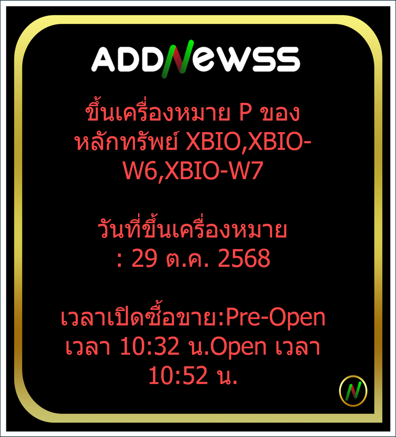 ตลาดหลักทรัพย์แห่งประเทศไทย (ตลท.) ขึ้นเครื่องหมาย P ของหลักทรัพย์ XBIO,XBIO-W6,XBIO-W7 เป็นการชั่วคราว เนื่องจาก Auto Pause