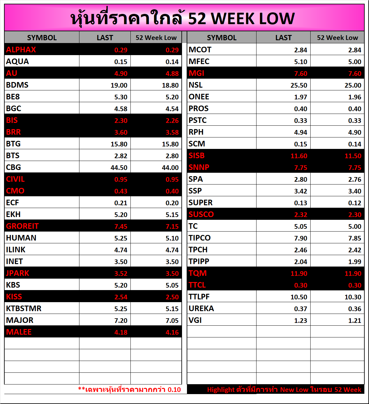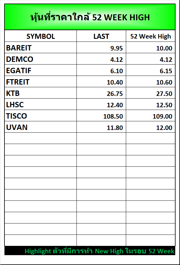 ⭐หุ้นที่ราคาใกล้ 52 Week 🟢High 🔴Low 📅29/10/2025
