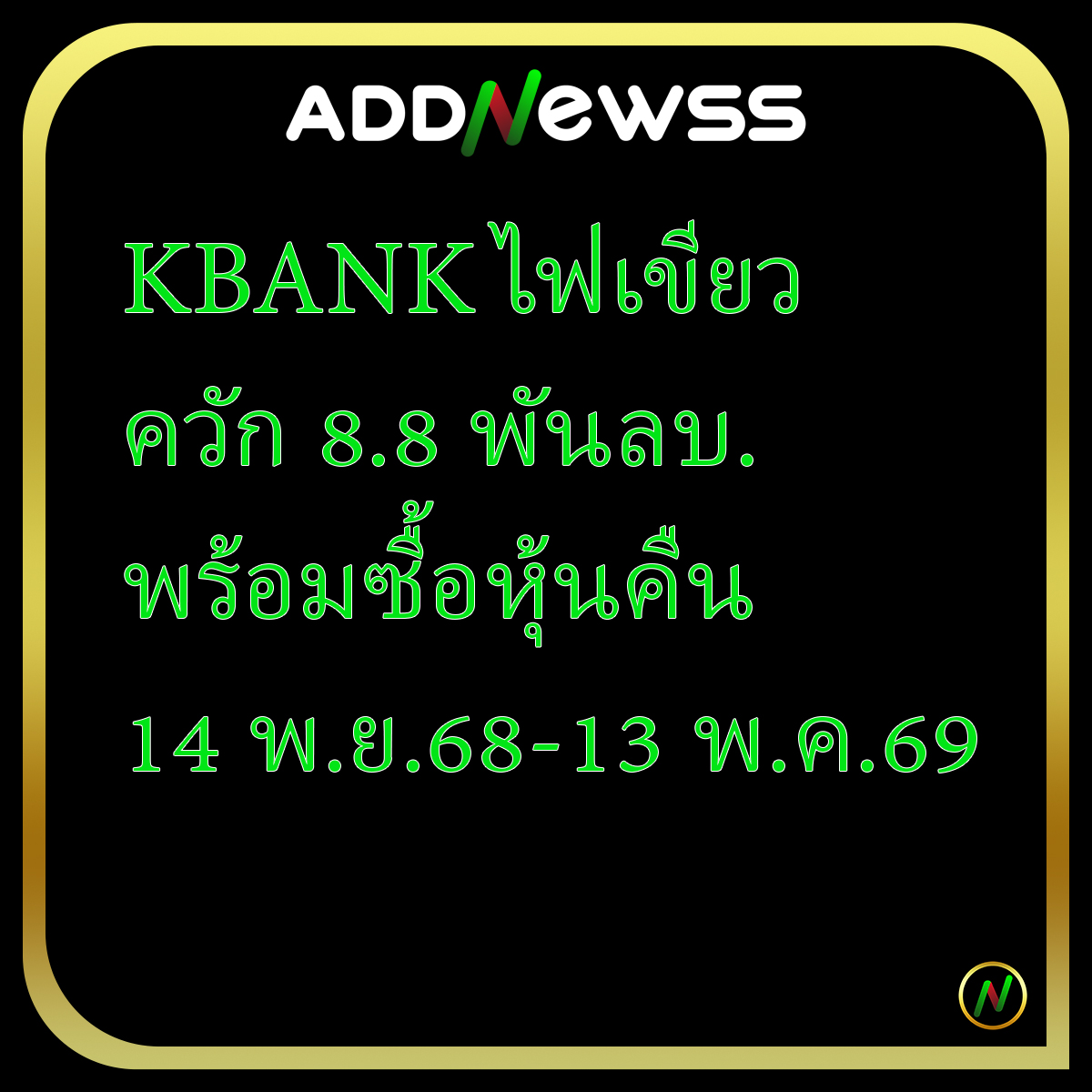 IQ > บอร์ด KBANK ไฟเขียวควัก 8.8 พันลบ.พร้อมซื้อหุ้นคืน 14 พ.ย.68-13 พ.ค.69