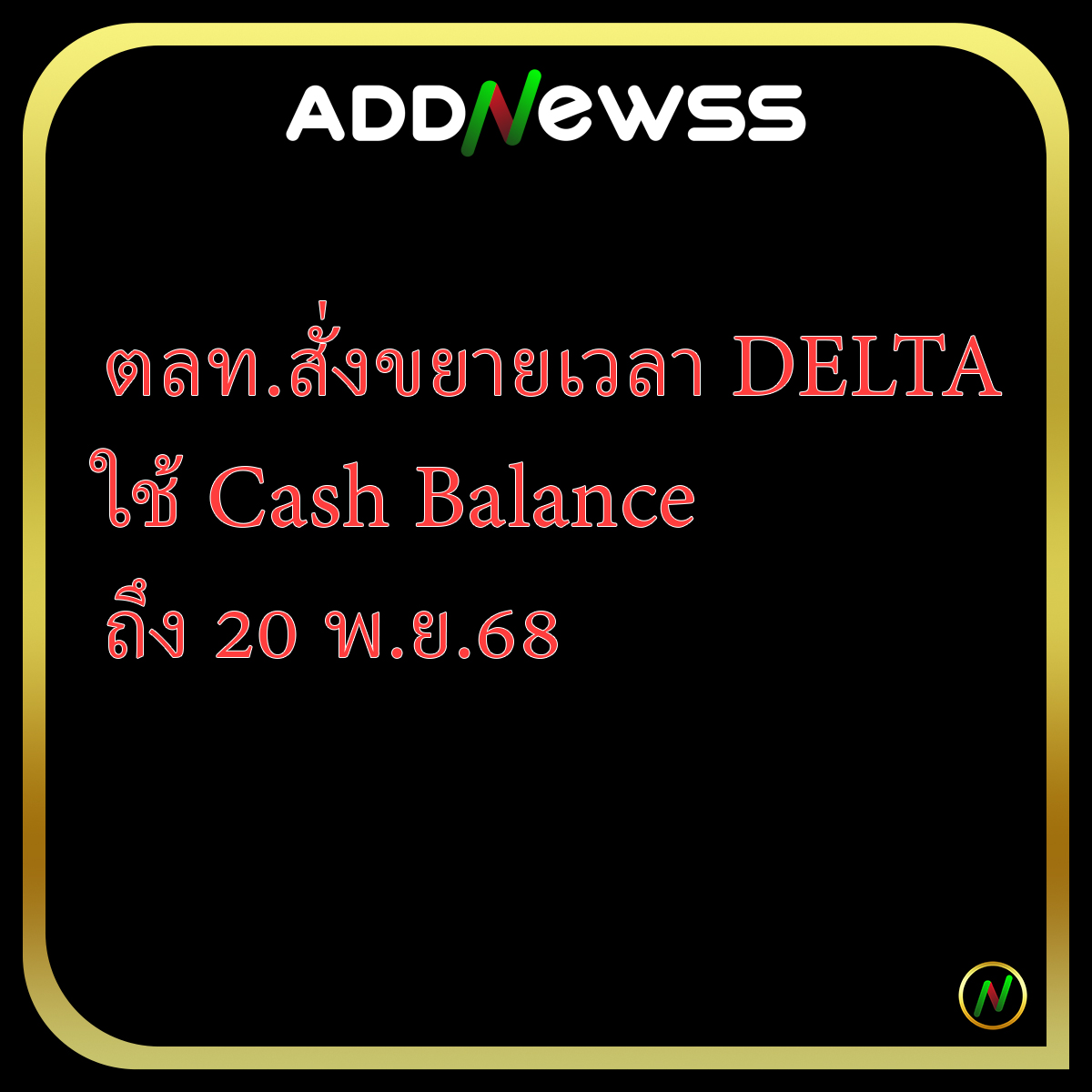 🔥ตลท.สั่งขยายเวลา DELTA ใช้ Cash Balance ถึง 20 พ.ย.68