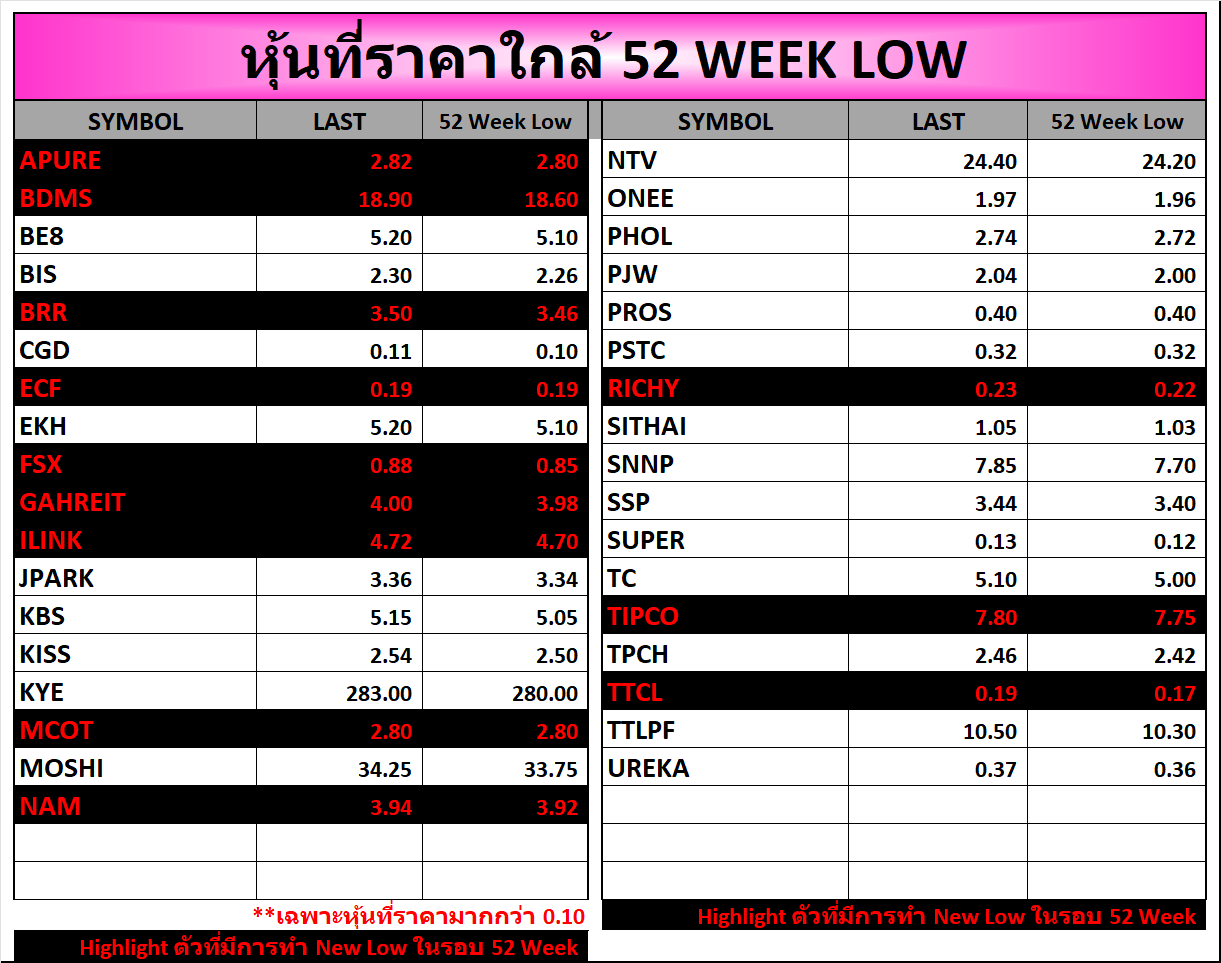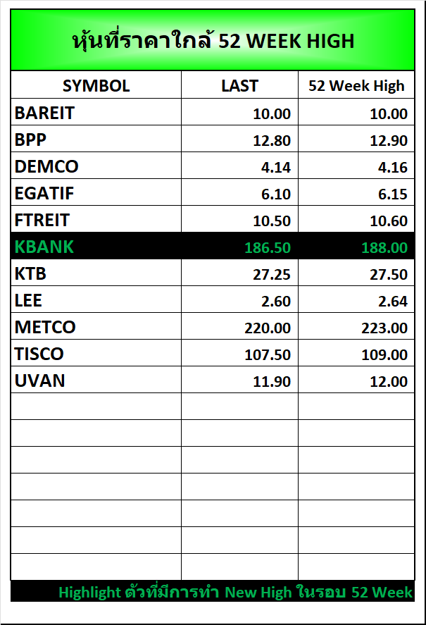 ⭐หุ้นที่ราคาใกล้ 52 Week 🟢High 🔴Low 📅31/10/2025