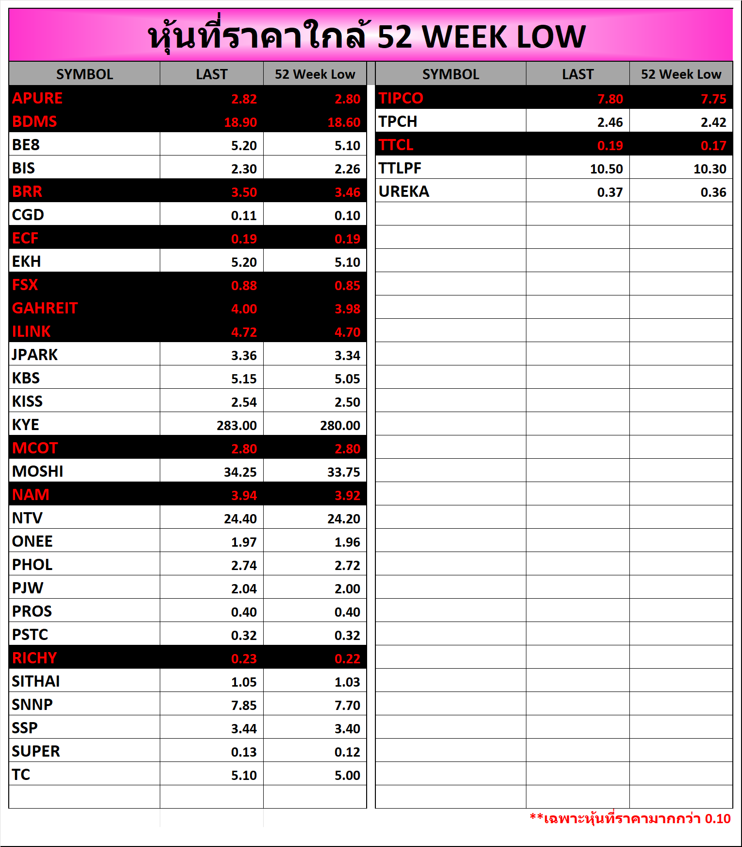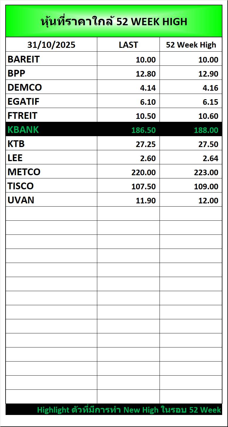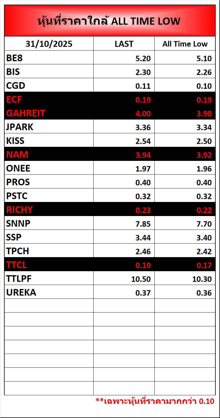 ⭐🔥หุ้นที่ราคาใกล้ ALL TIME 🟢High 🔴Low 📅31/10/2025