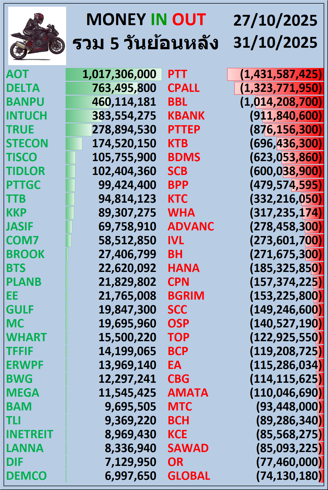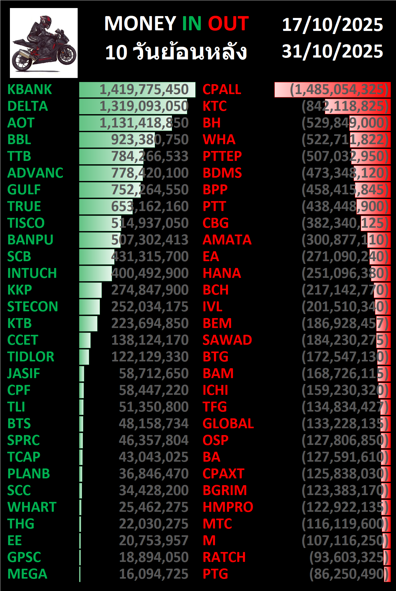 💸MONEY 🟢IN 🔴OUT 1 , 5 , 10 วันย้อนหลัง 31/10/2025