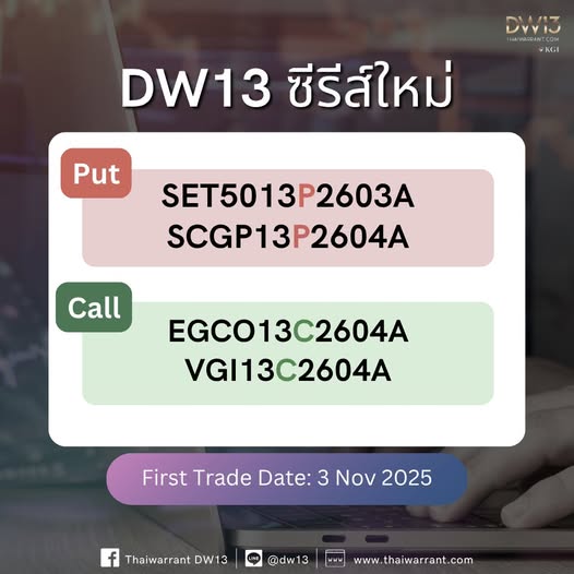 พบกับ DW13 ซีรีส์ใหม่ ทั้ง Call และ Put https://www.thaiwarrant.com/kgi-dw/newdw