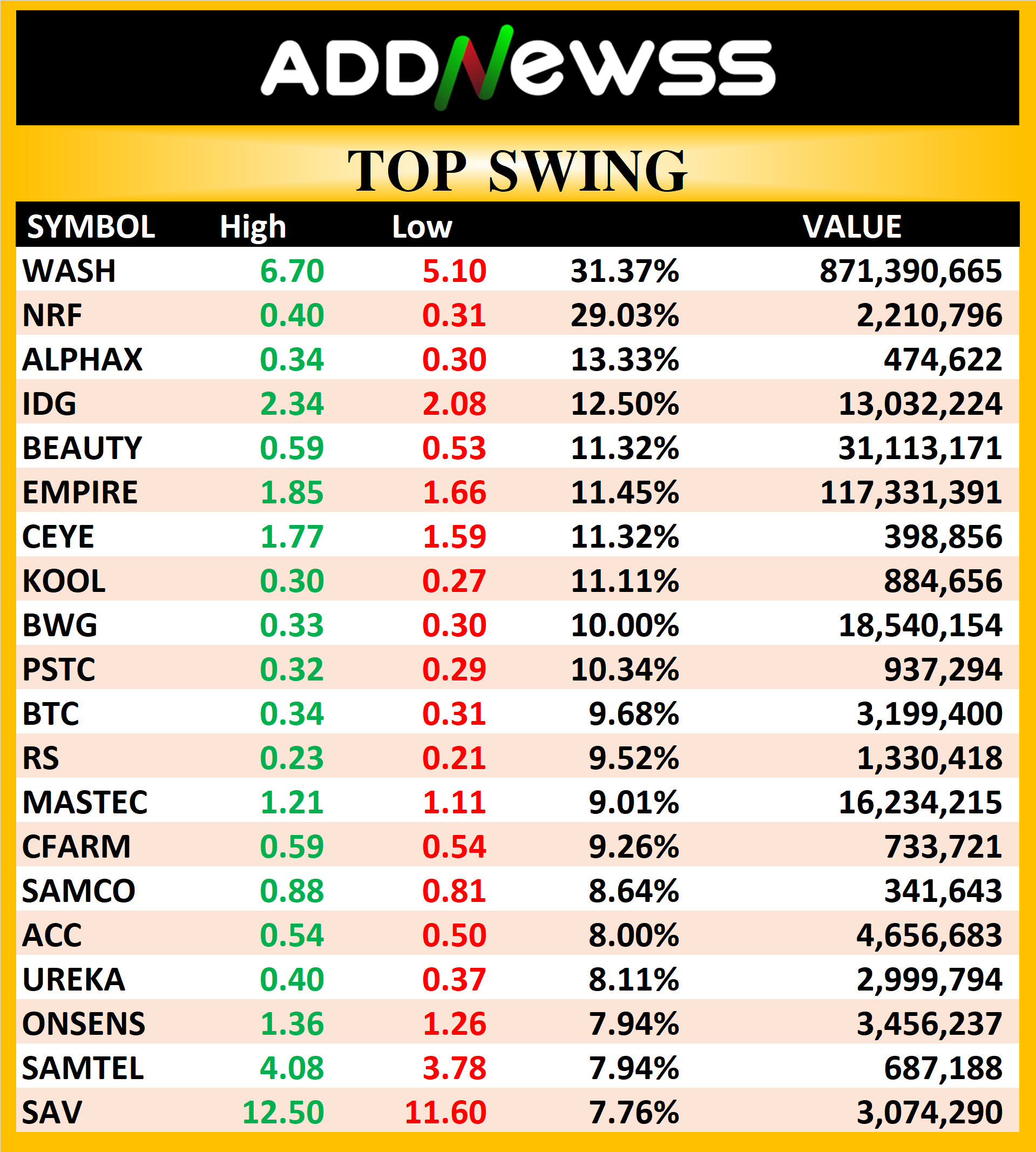 Most Active Value