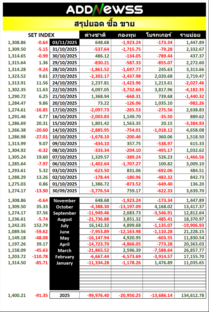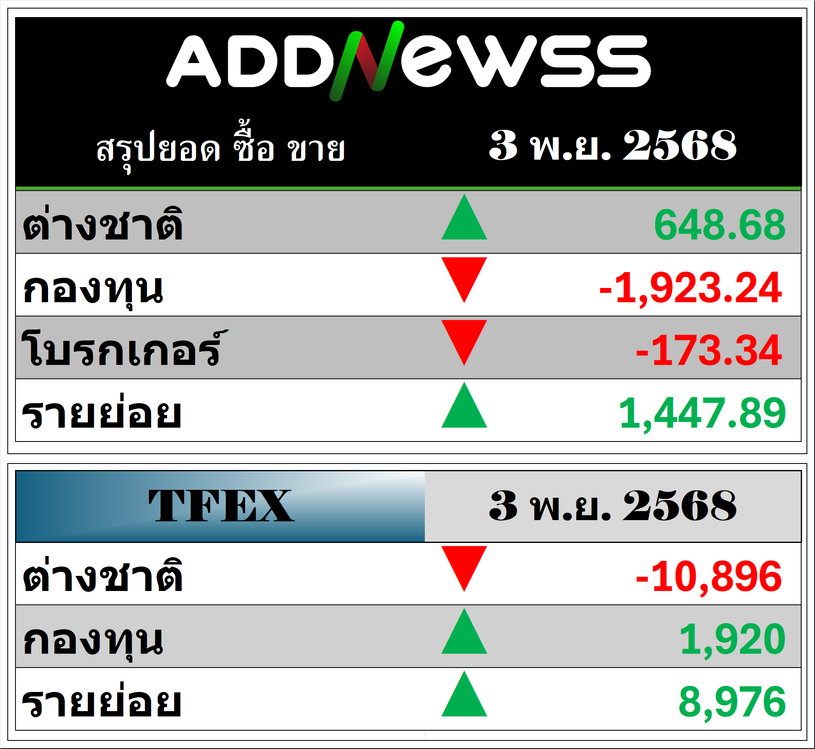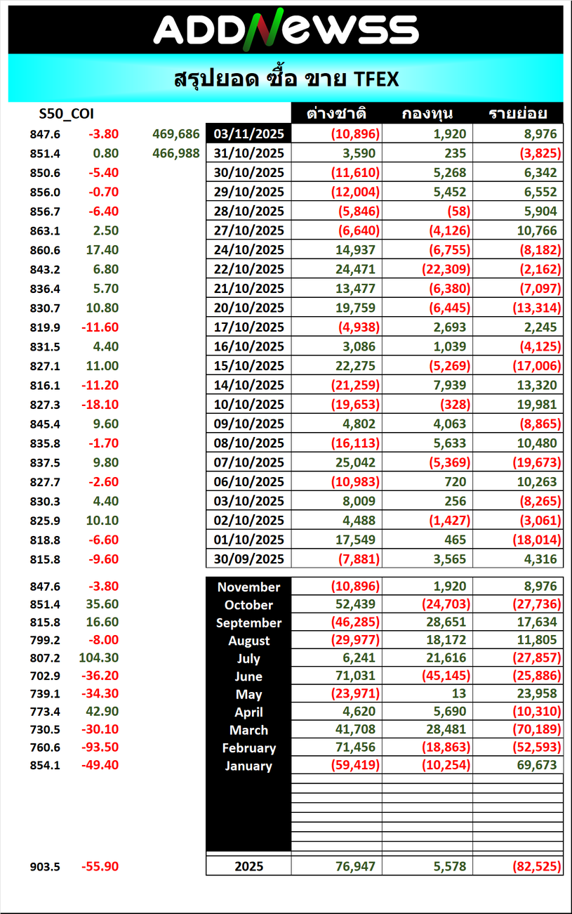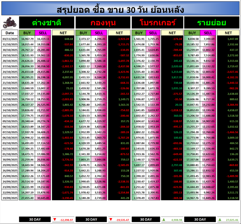 🔥🔥สรุปยอด ซื้อ ขาย🟢 🔴 03/11/2025