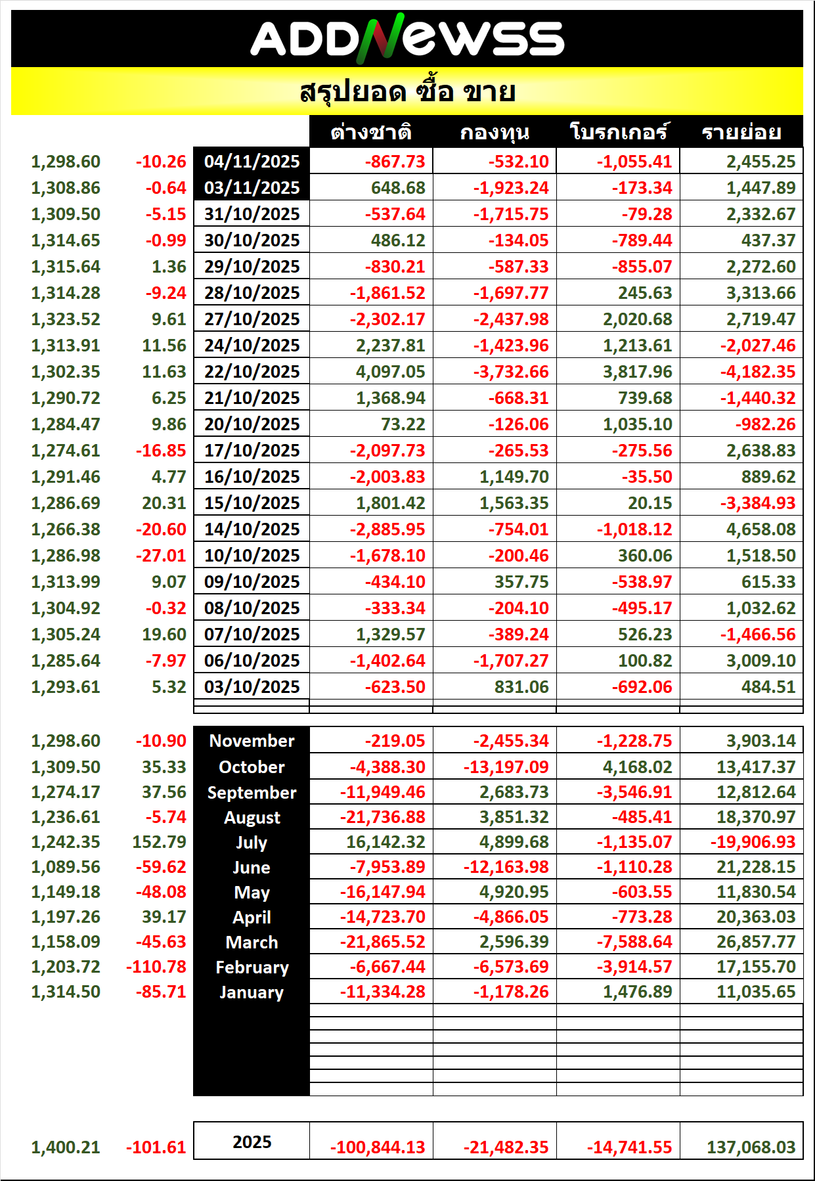 🔥🔥สรุปยอด ซื้อ ขาย🟢 🔴 04/11/2025