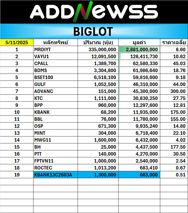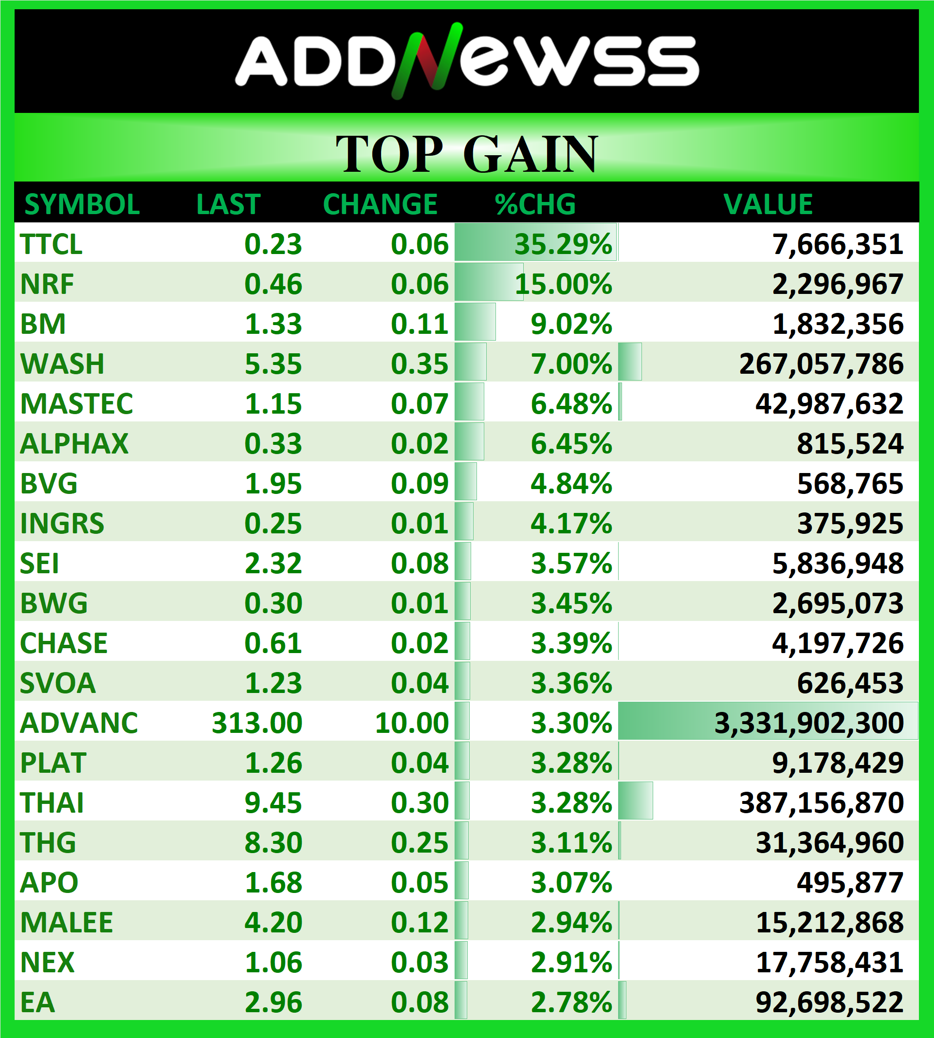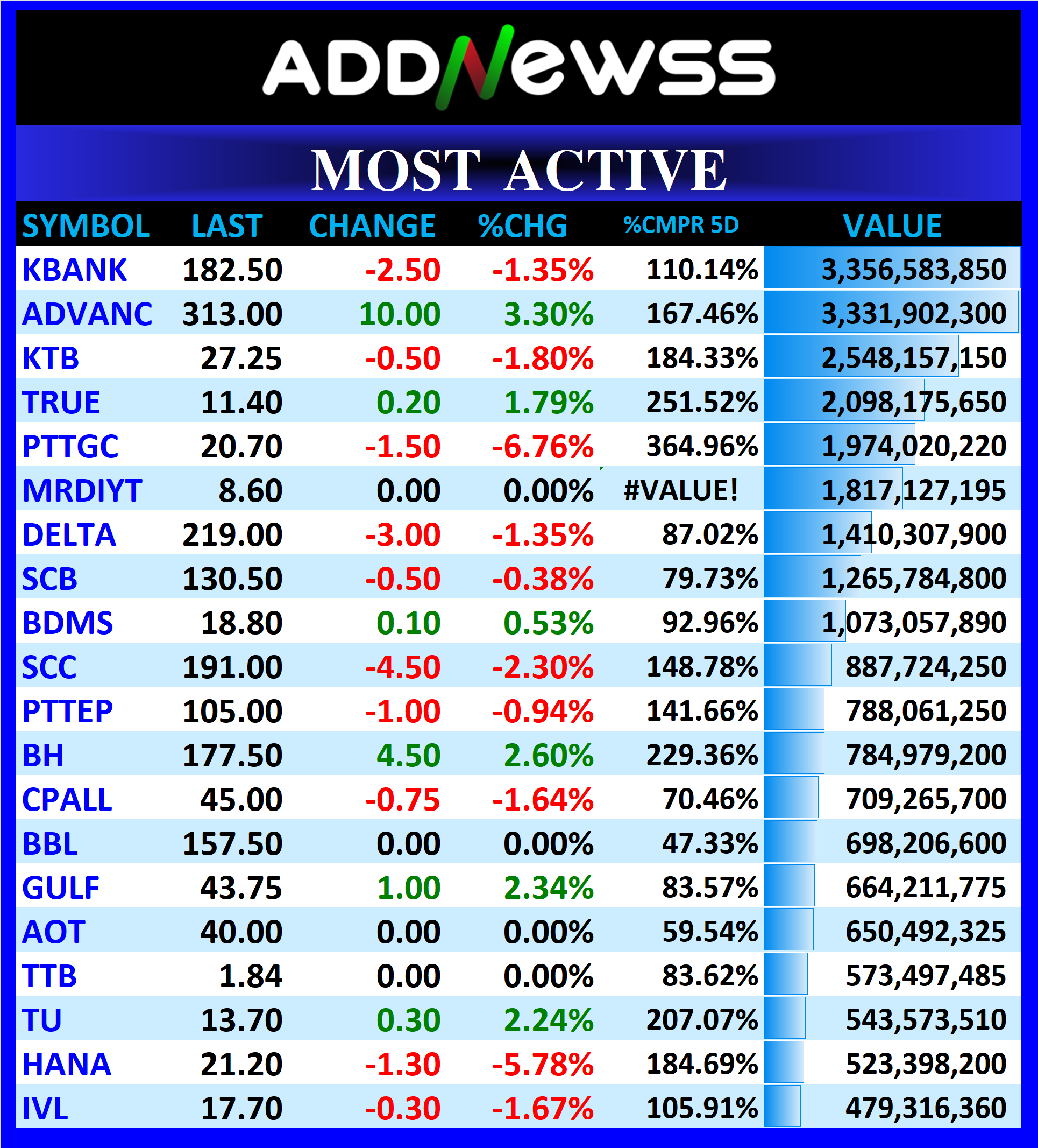 ADVANC : 🟢+10.00 ฿3,331,902,300