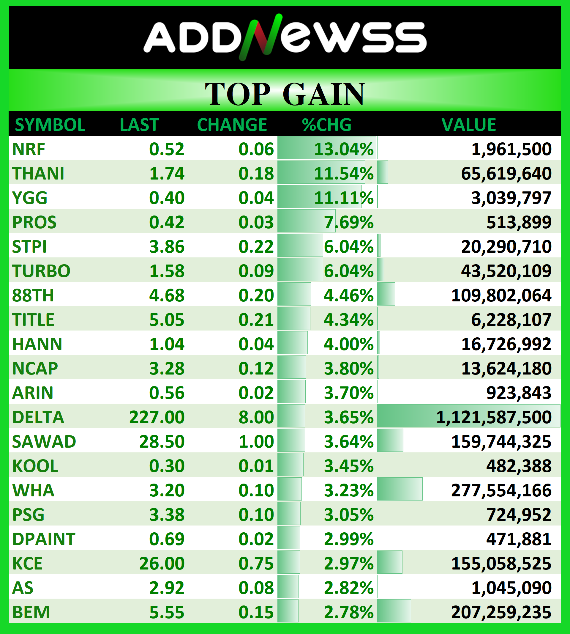 DELTA : 🟢+8.00 ฿1,121,587,500