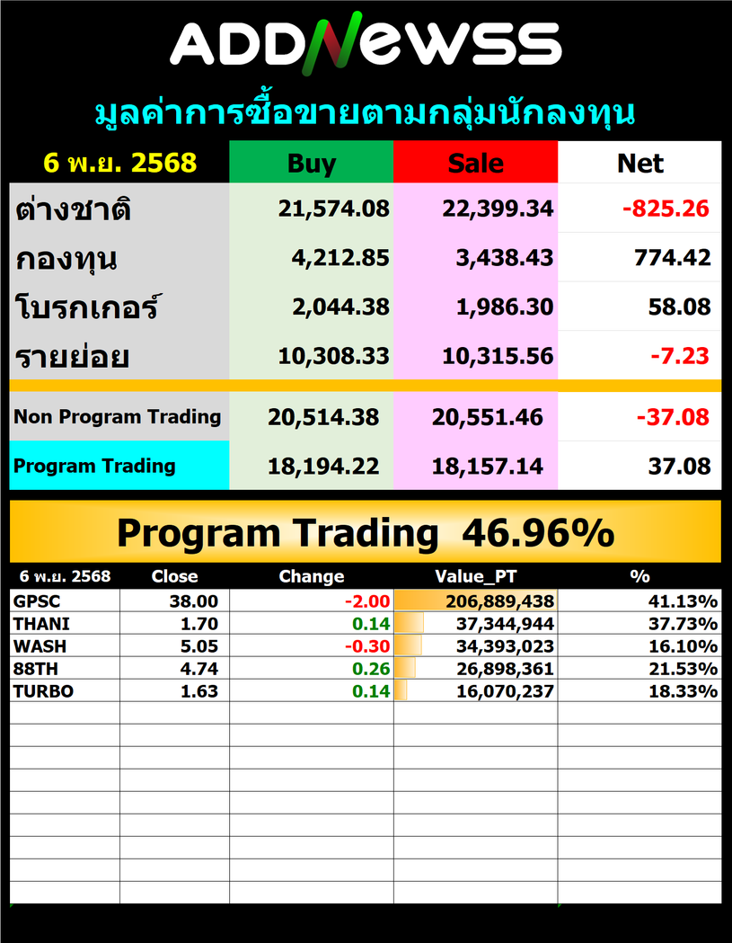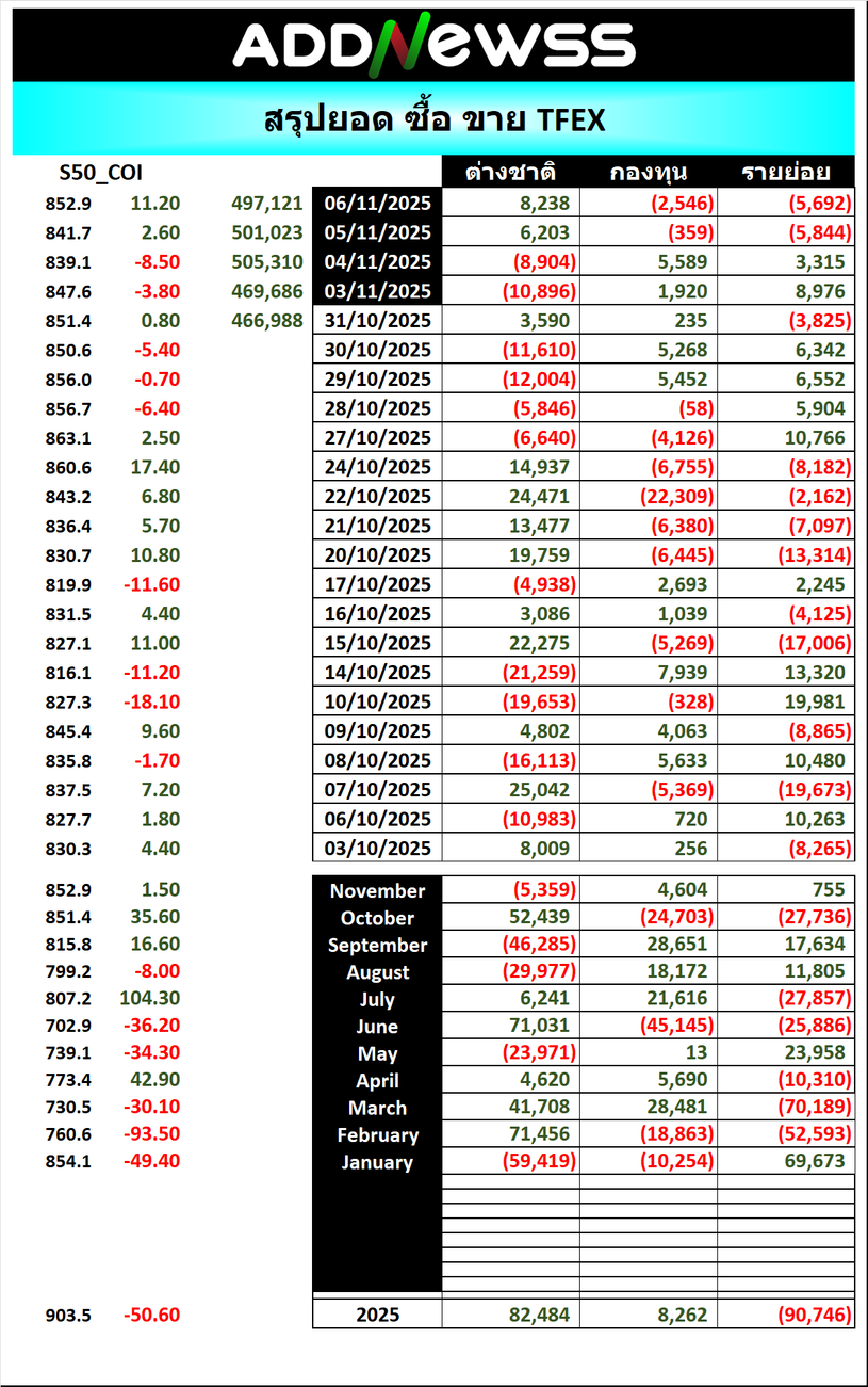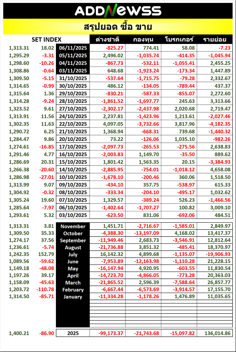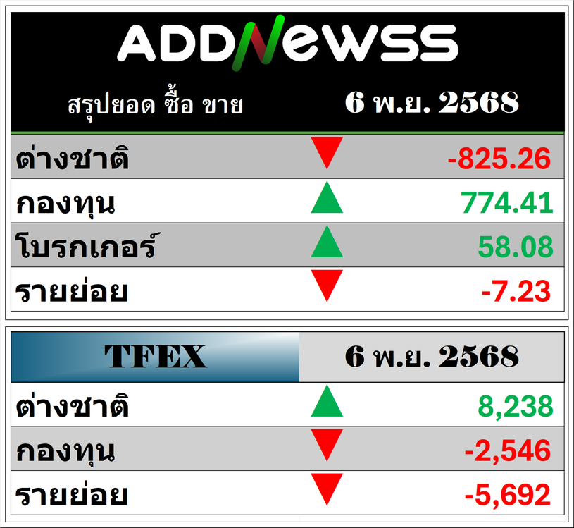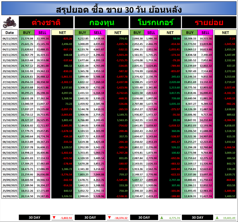 🔥🔥สรุปยอด ซื้อ ขาย🟢 🔴 06/11/2025