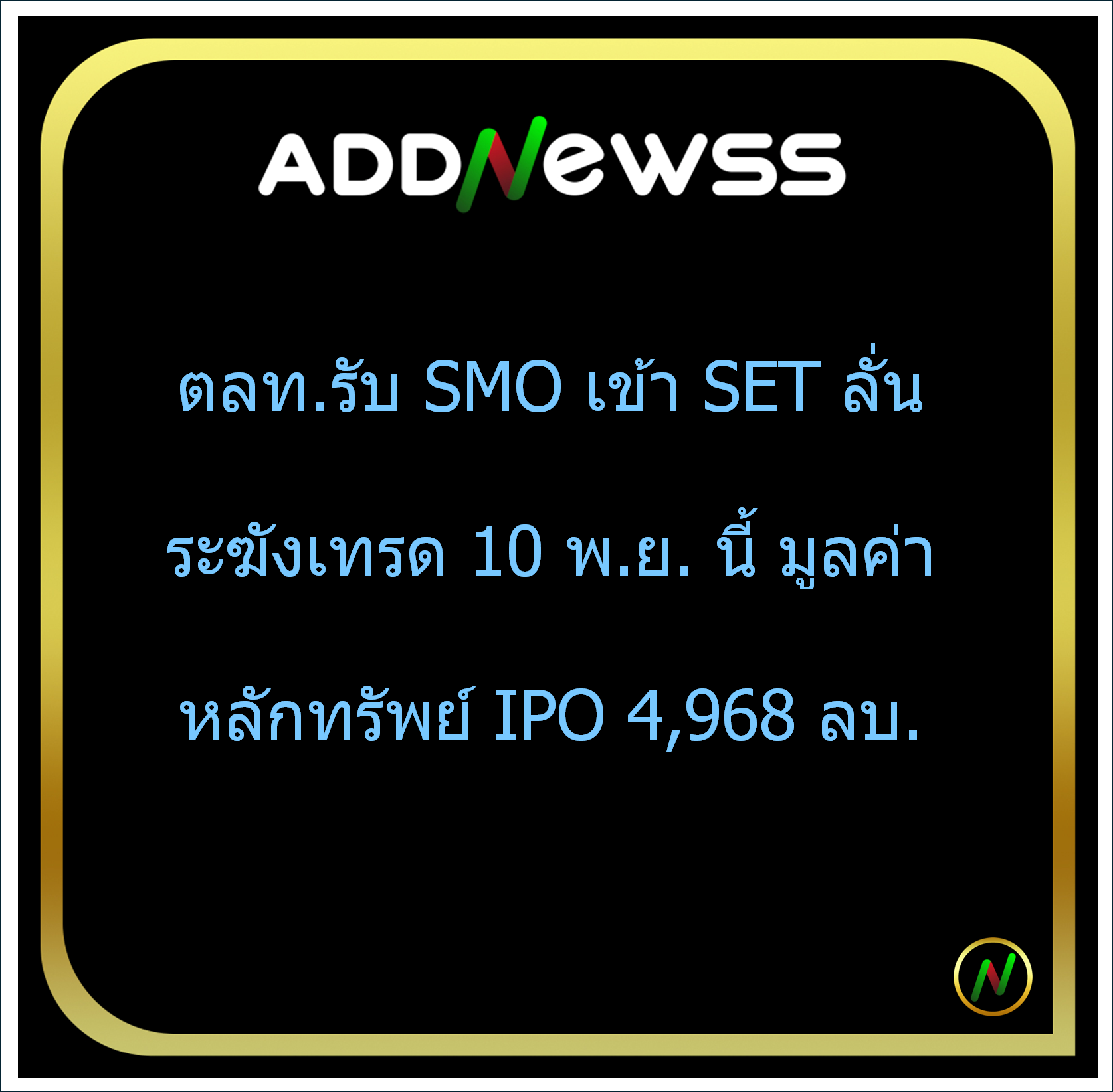 IQ > ตลท.รับ SMO เข้า SET ลั่นระฆังเทรด 10 พ.ย. นี้ มูลค่าหลักทรัพย์ IPO 4,968 ลบ.