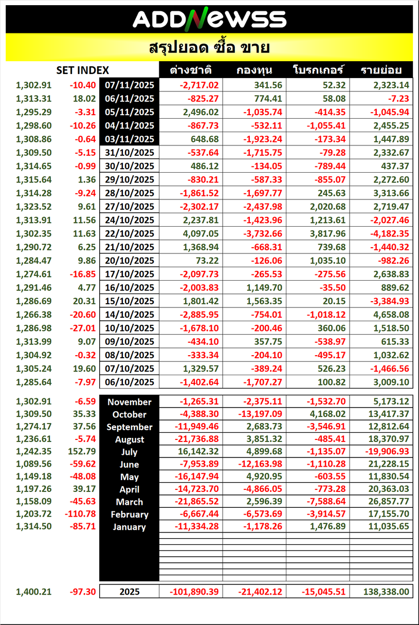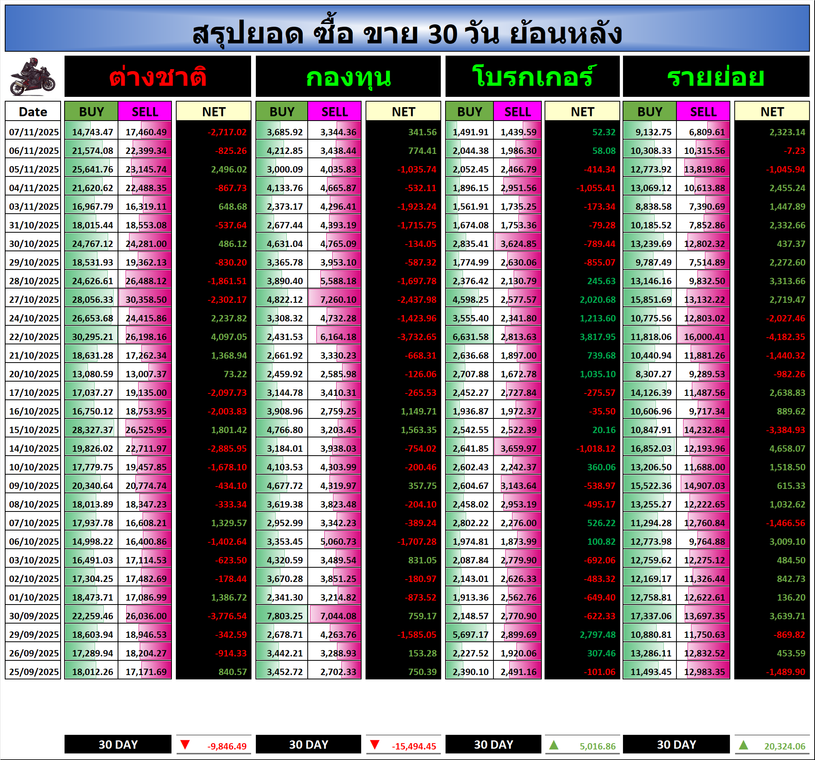 🔥🔥สรุปยอด ซื้อ ขาย🟢 🔴 07/11/2025