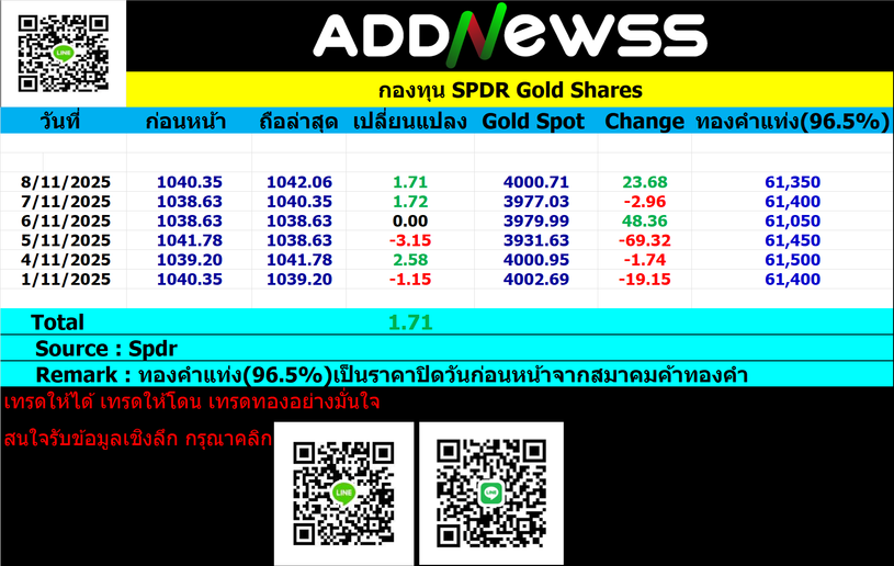 ยอดสะสม Spdr ประจำวันที่ 8 พฤศจิกายน 2025 📅 2025-11-08 08:08 ✎ bom999 🗇 Gold 👍 - แชร์โพสต์นี้ ยอดสะสม Spdr ย้อนหลังประจำเดือนตุลาคม 2025 https://addnewss.news/post/6903fd6f753c82c2f202c19e
