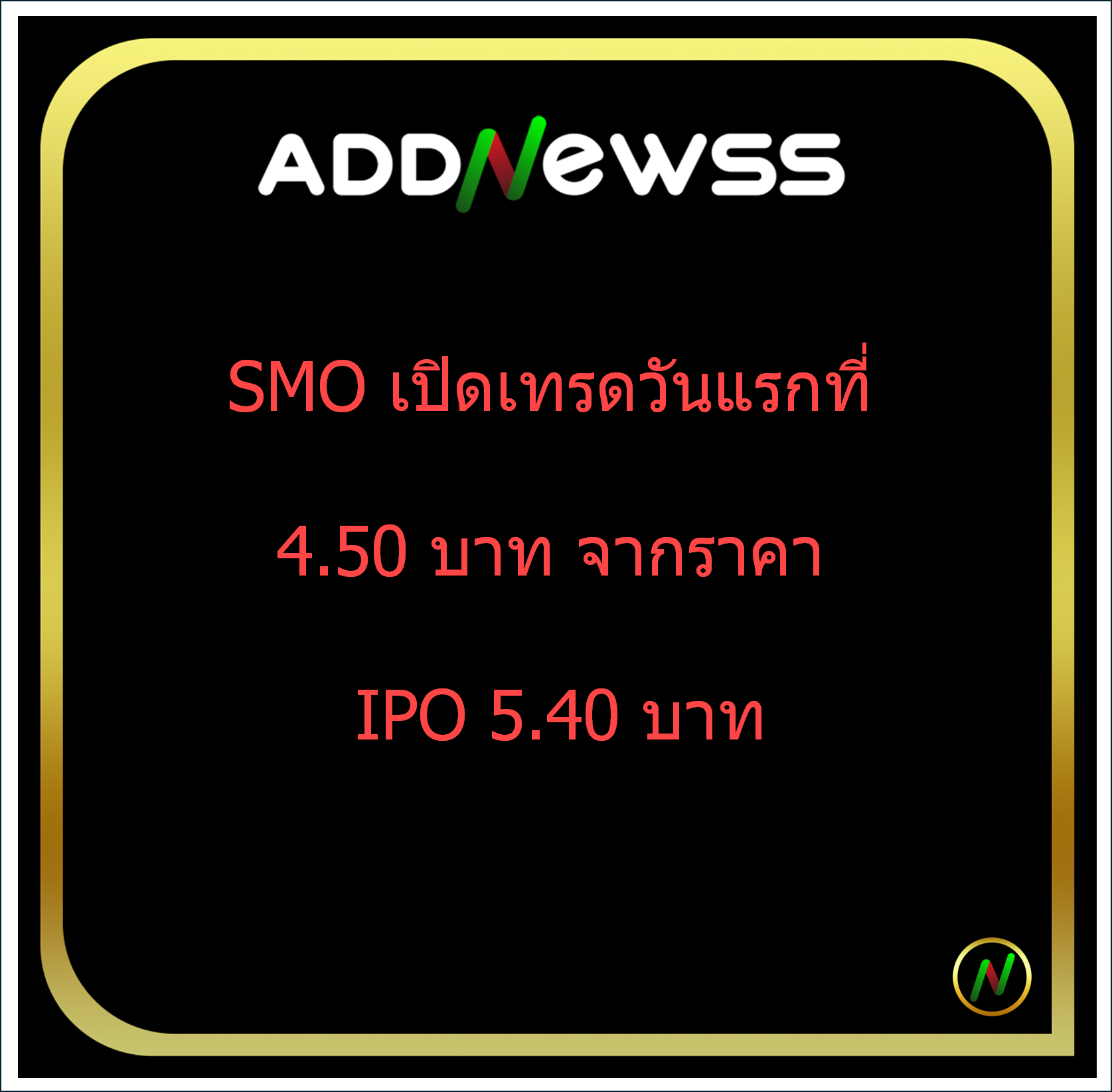 SMO เปิดเทรดวันแรก 4.50 บาท ลดลง 0.90 บาท (-16.67%) จากราคา IPO 5.40 บาท