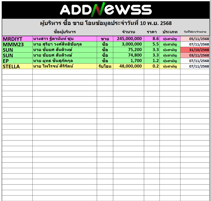 🔥🔥สรุปผู้บริหาร ซื้อ ขาย โอน 📅 วันรายงาน 10/11/2025