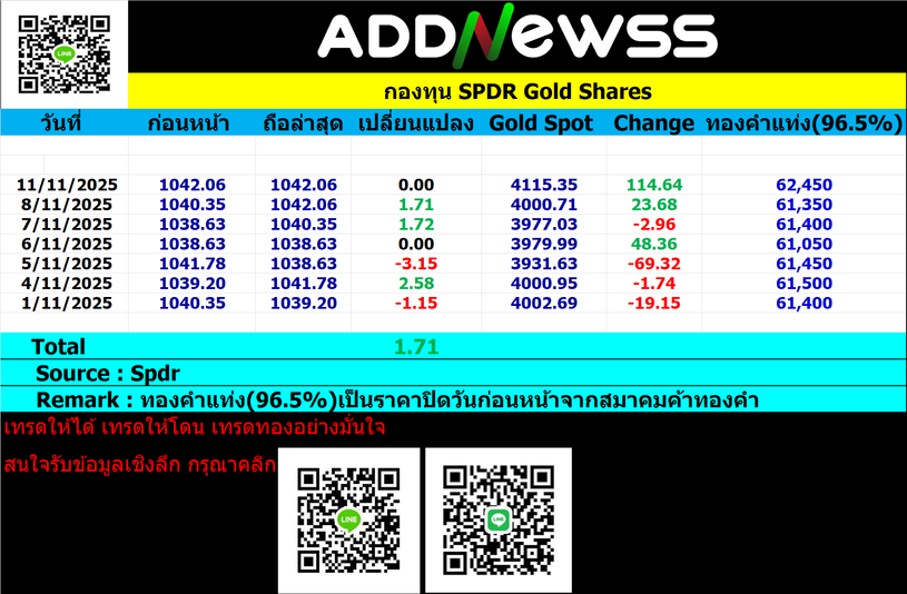 ยอดสะสม Spdr ประจำวันที่ 11 พฤศจิกายน 2025 📅 2025-11-11 07:14 ✎ bom999 🗇 Gold 👍 - แชร์โพสต์นี้ ยอดสะสม Spdr ย้อนหลังประจำเดือนตุลาคม 2025 https://addnewss.news/post/6903fd6f753c82c2f202c19e