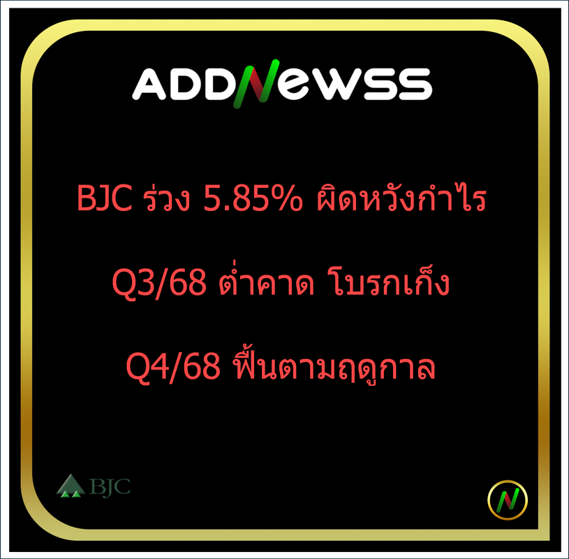 IQ > HILITE: BJC ร่วง 5.85% ผิดหวังกำไร Q3/68 ต่ำคาด โบรกเก็ง Q4/68 ฟื้นตามฤดูกาล