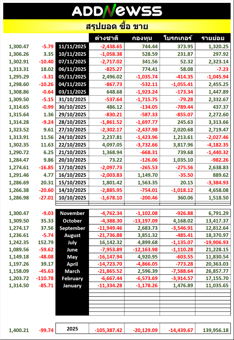 🔥🔥สรุปยอด ซื้อ ขาย🟢 🔴 11/11/2025