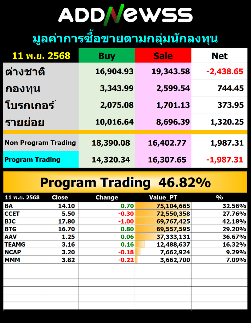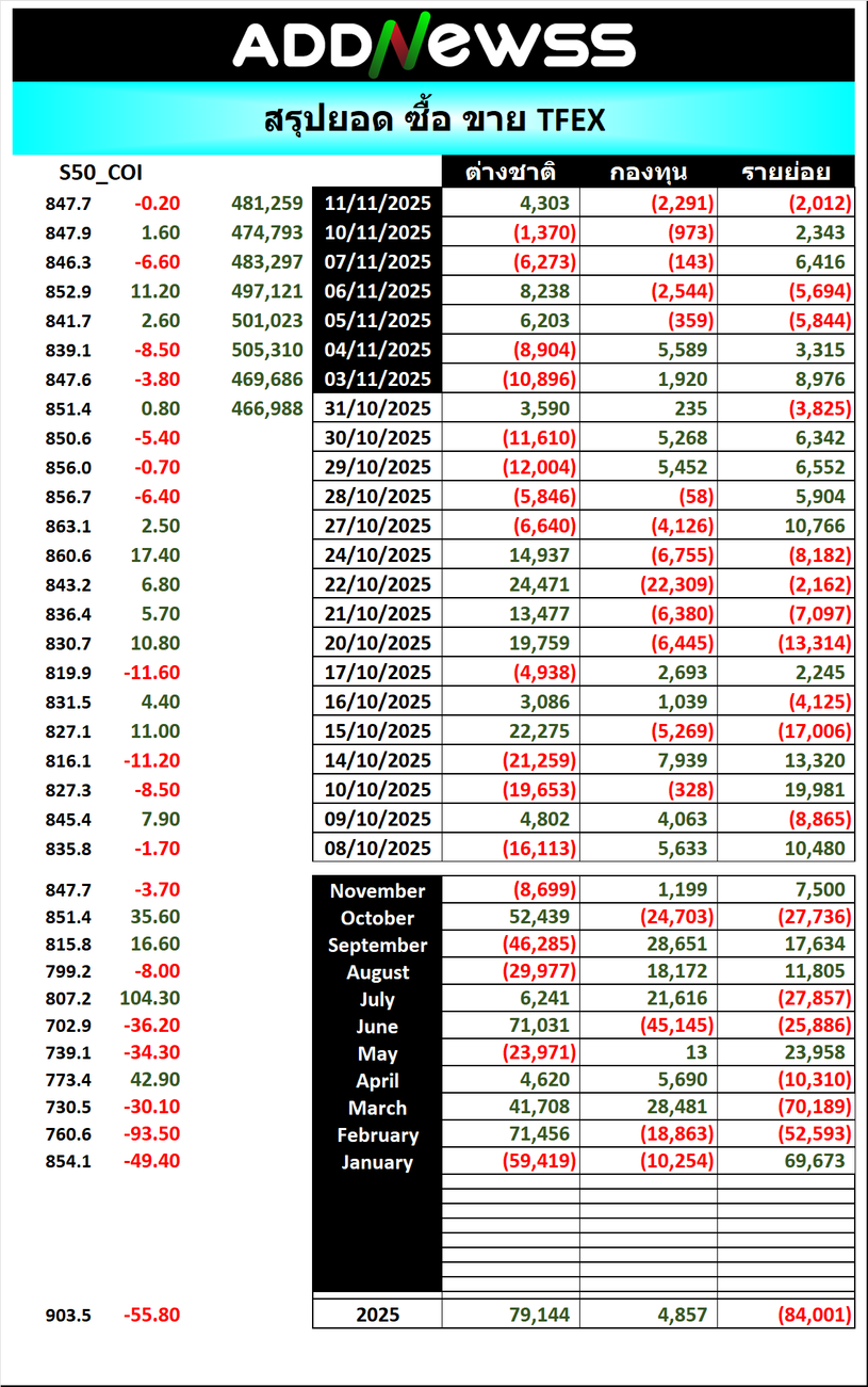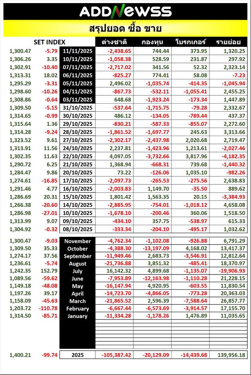 🔥🔥สรุปยอด ซื้อ ขาย🟢 🔴 11/11/2025