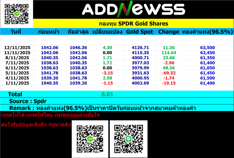 ยอดสะสม Spdr ประจำวันที่ 12 พฤศจิกายน 2025 📅 2025-11-12 07:52 ✎ bom999 🗇 Gold 👍 - แชร์โพสต์นี้ ยอดสะสม Spdr ย้อนหลังประจำเดือนตุลาคม 2025 https://addnewss.news/post/6903fd6f753c82c2f202c19e